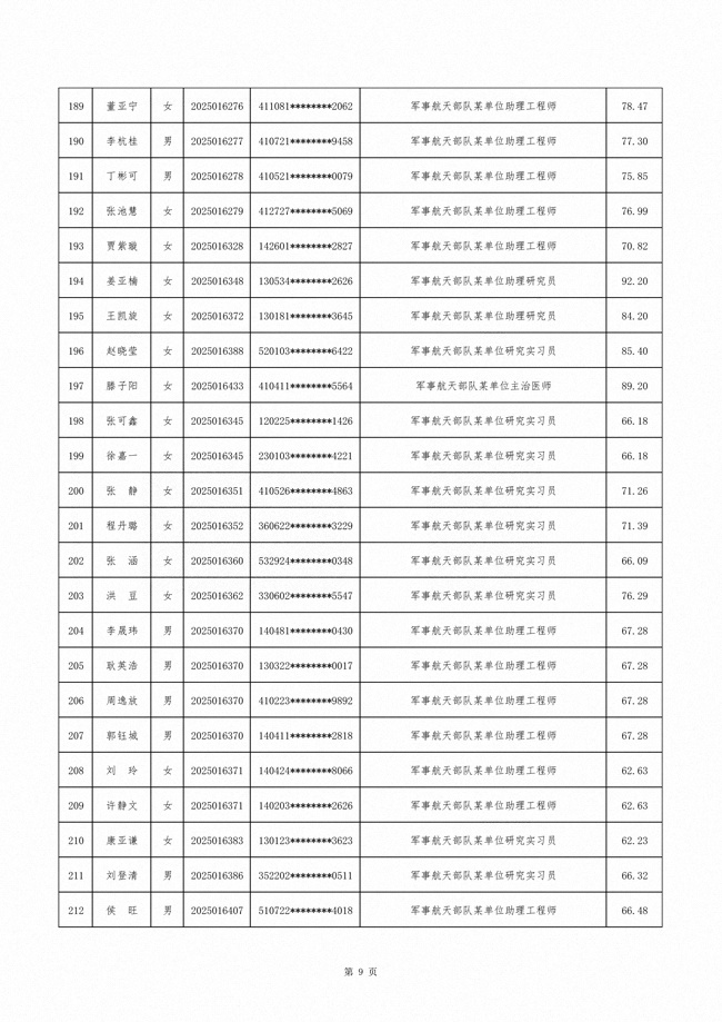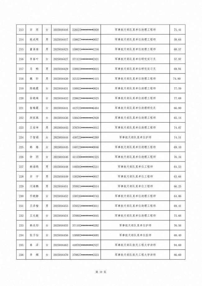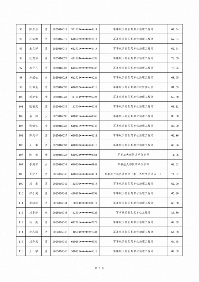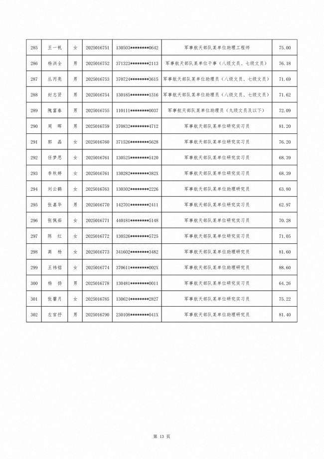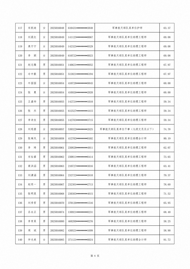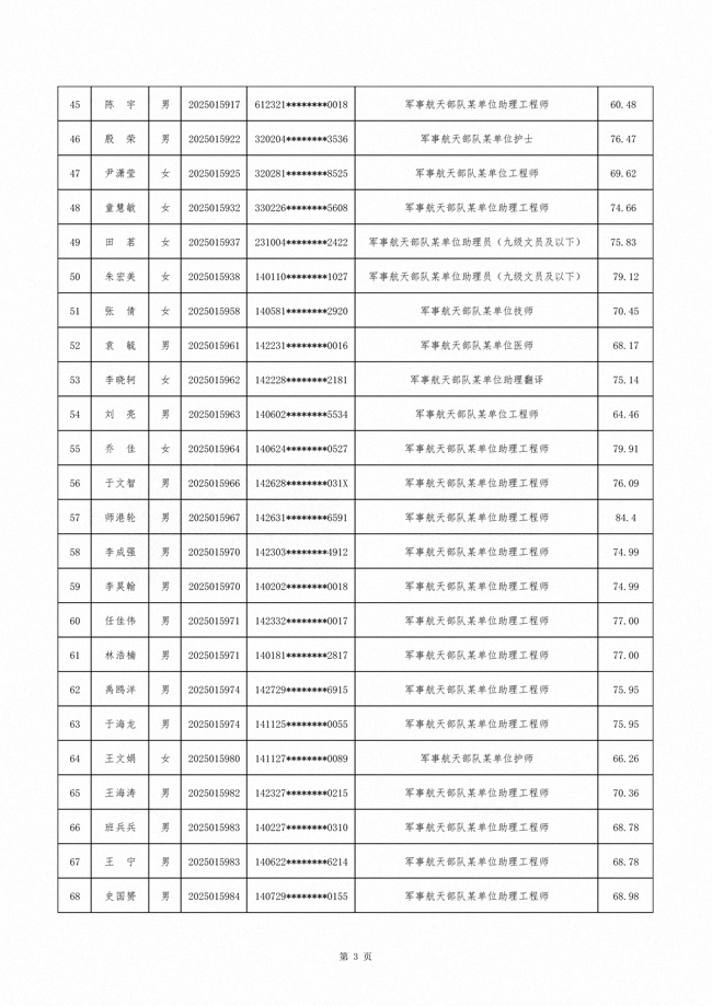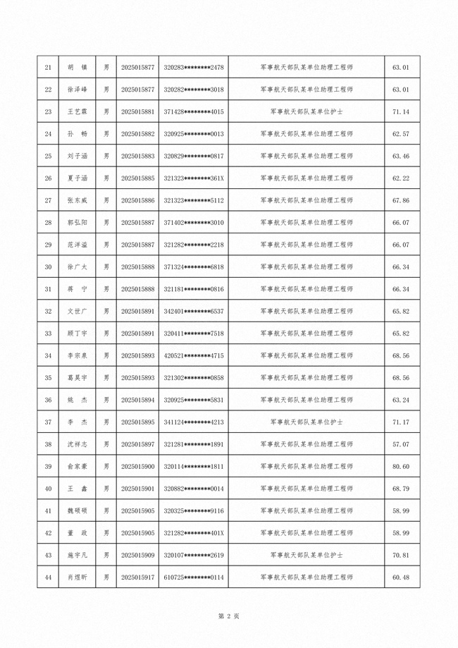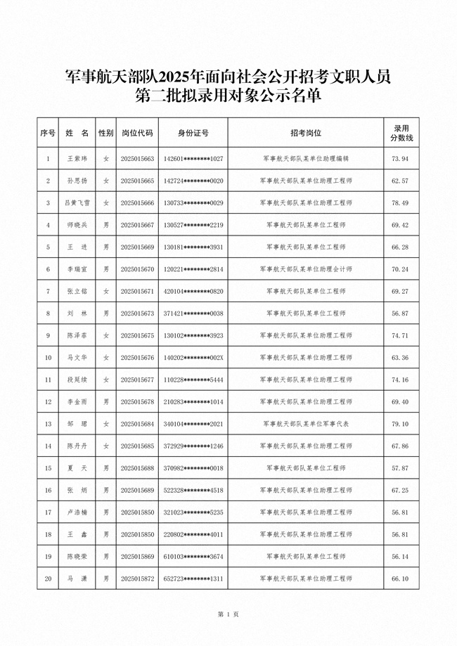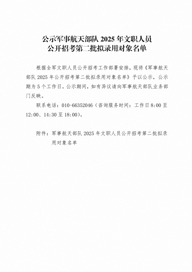 原文標(biāo)題:公示軍事航天部隊2025年文職人員公開招考第二批擬錄用對象名單