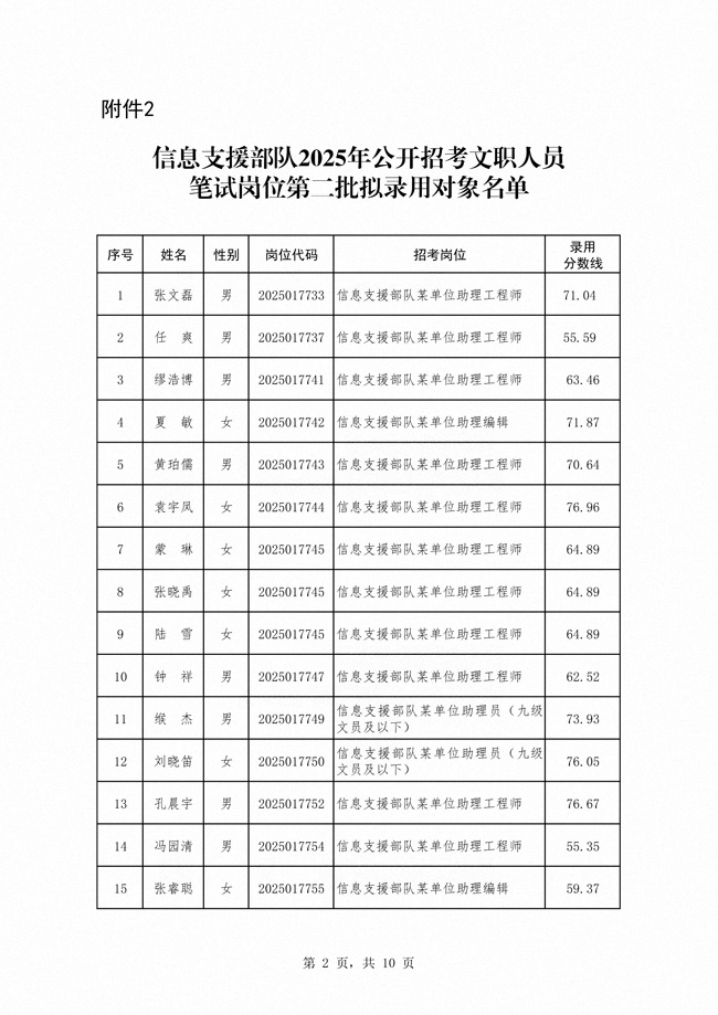 原文標(biāo)題:公式信息支援部隊(duì)2025年公開招考 文職人員第二批擬錄用對(duì)象名單