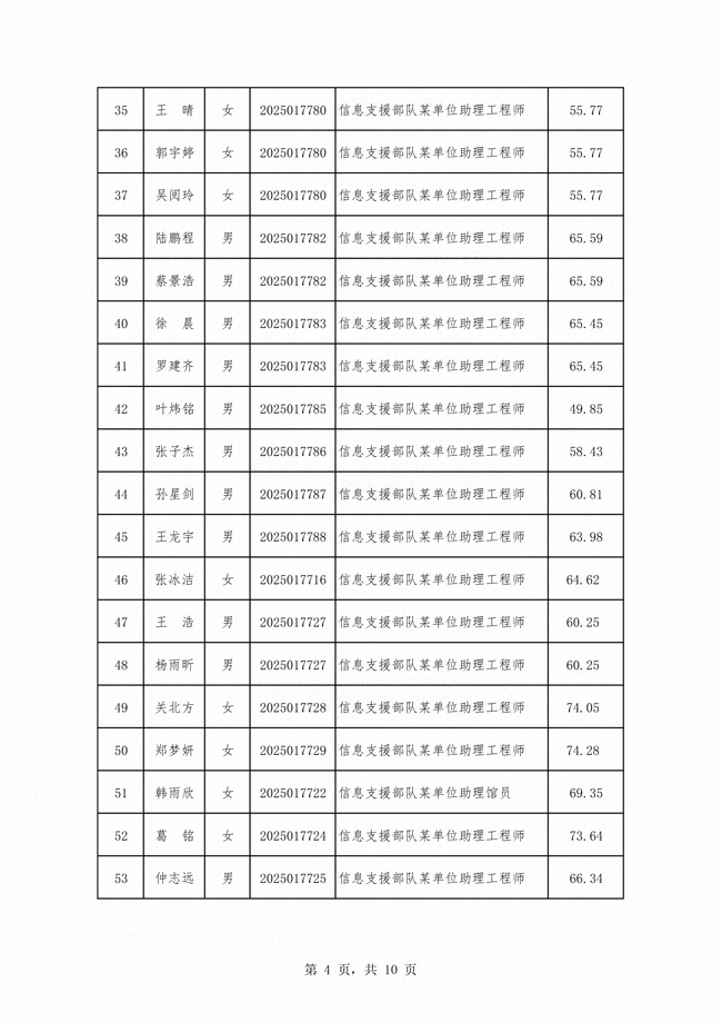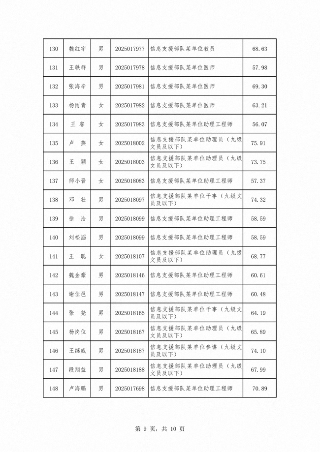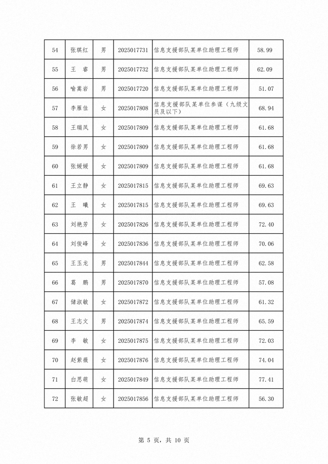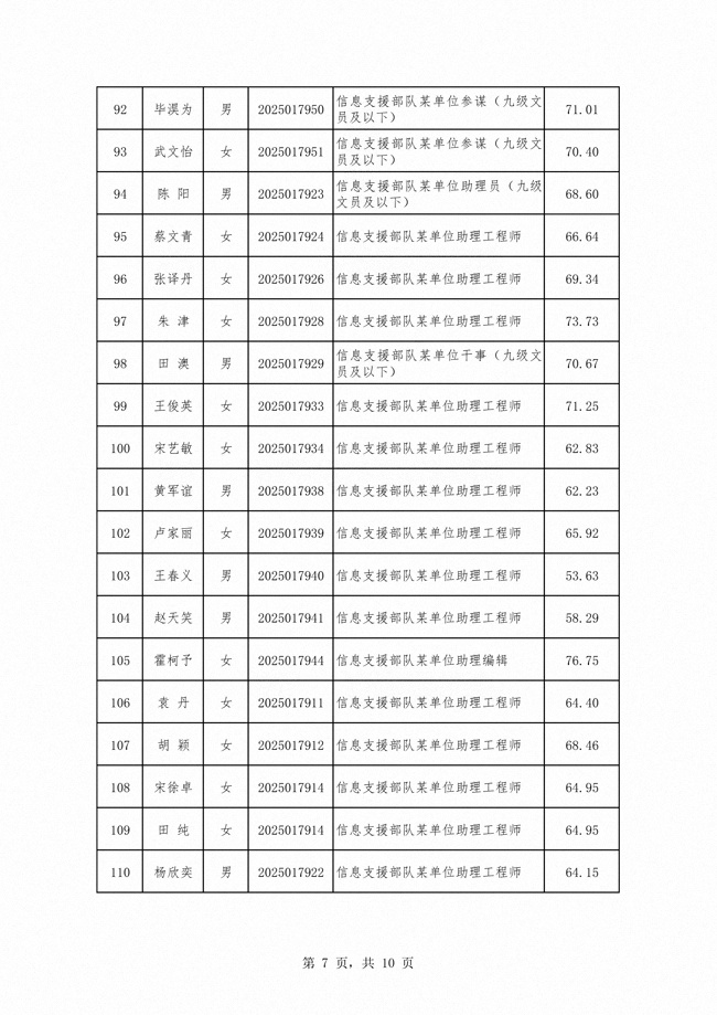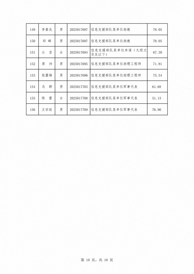2025年武裝部文職人員擬錄用名單(含上岸分?jǐn)?shù)線) 2025-10-09
