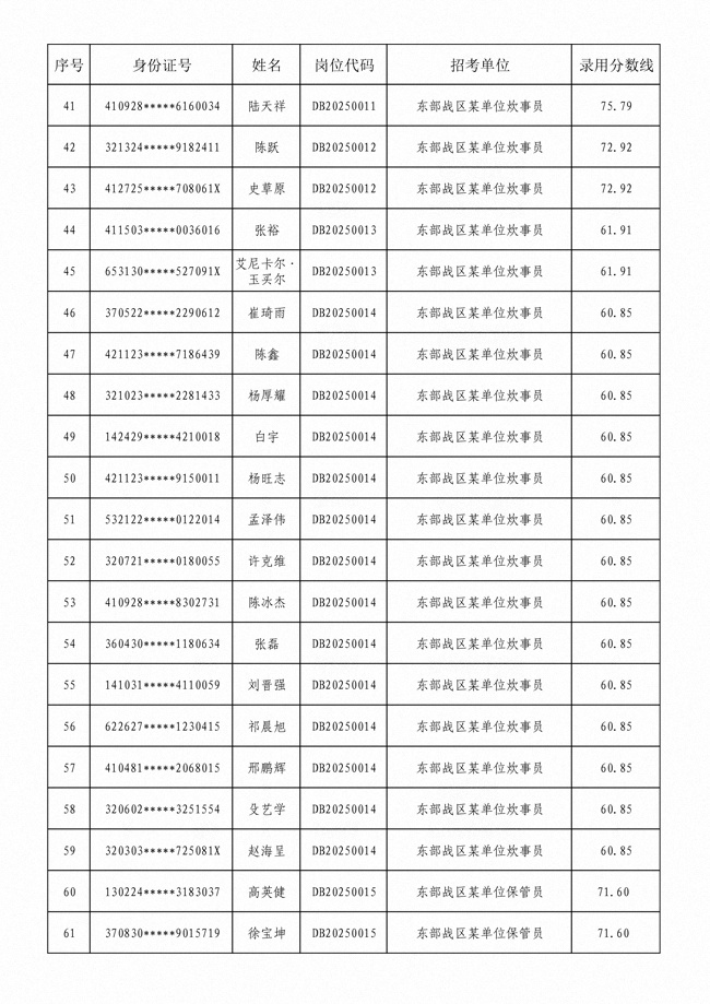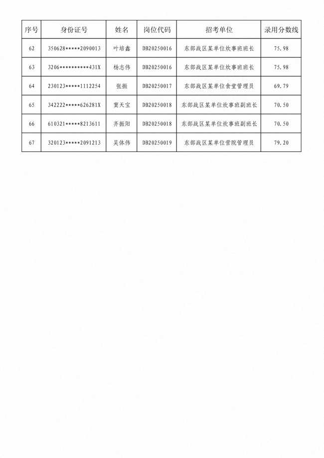 2025年武裝部文職人員擬錄用名單(含上岸分?jǐn)?shù)線) 2025-10-09