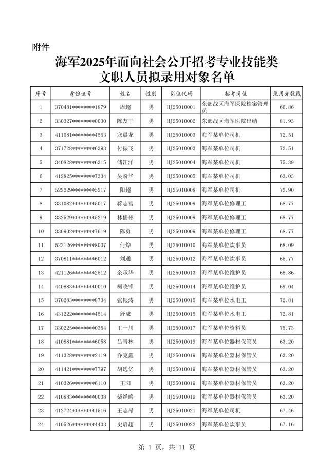 原文標題:公示海軍2025年面向社會公開招考專業(yè)技能類文職人員擬錄用對象名單