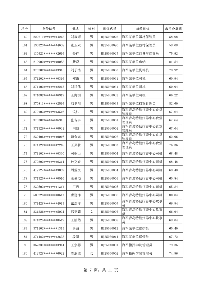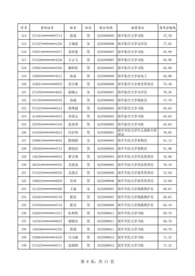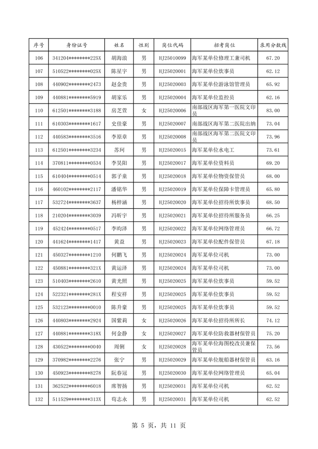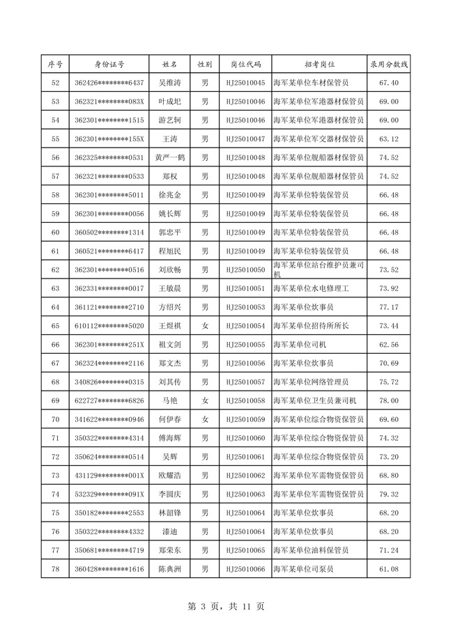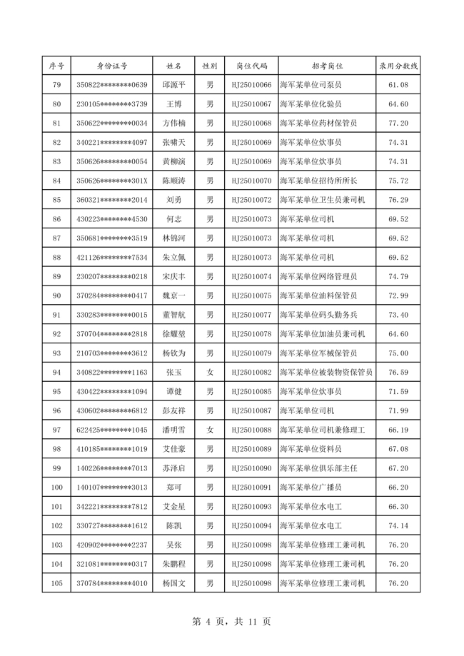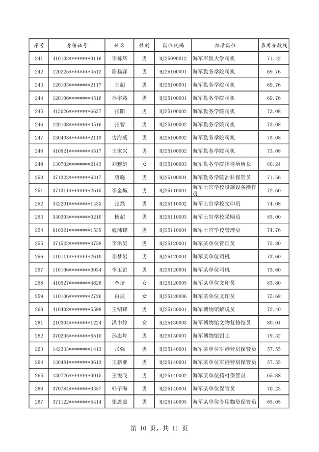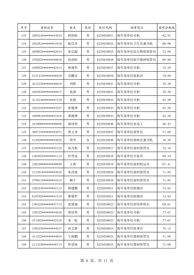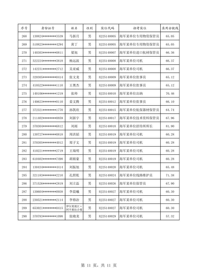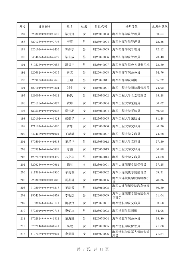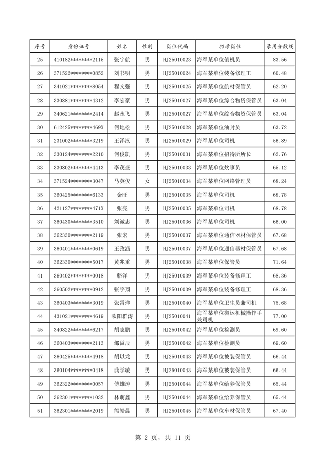 2025年武裝部文職人員擬錄用名單(含上岸分數線) 2025-10-09