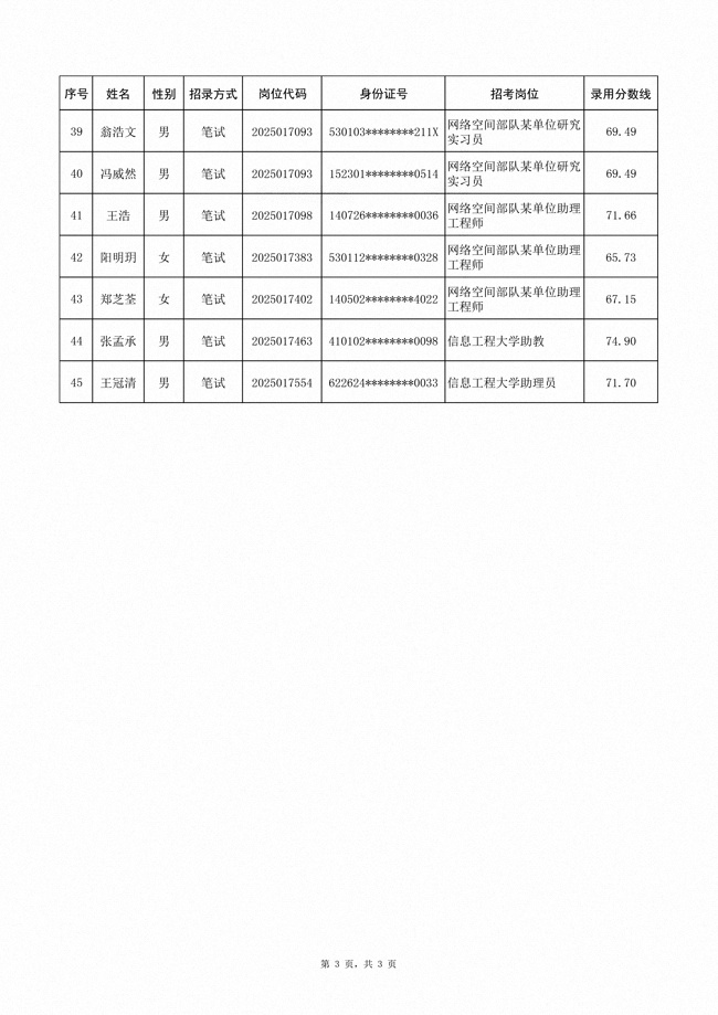 2025年武裝部文職人員擬錄用名單(含上岸分數(shù)線) 2025-10-09