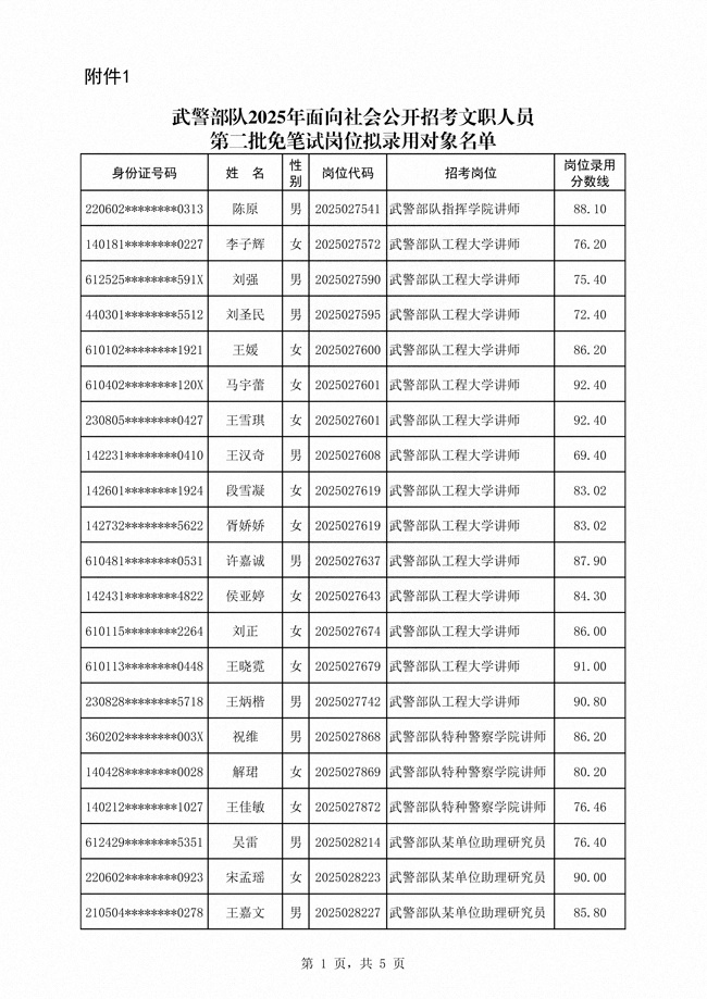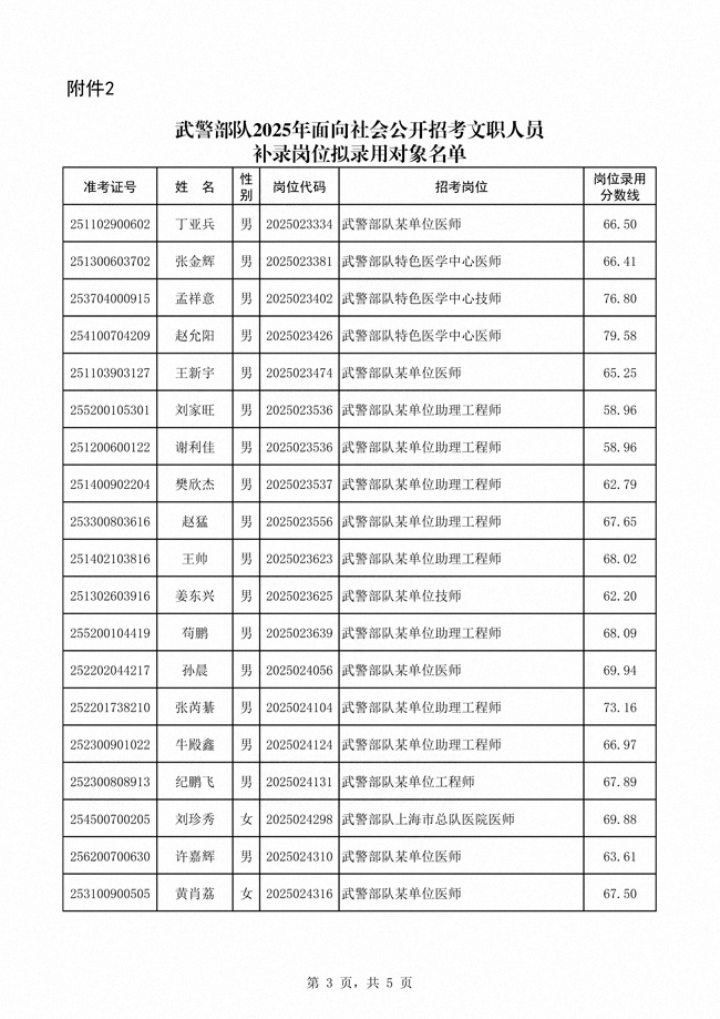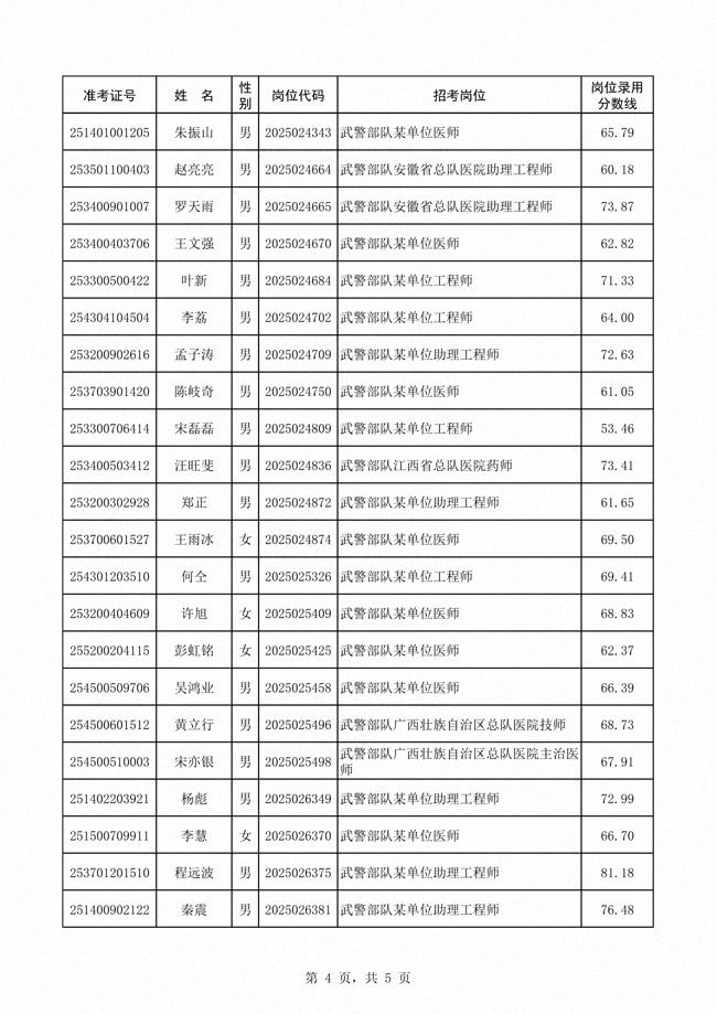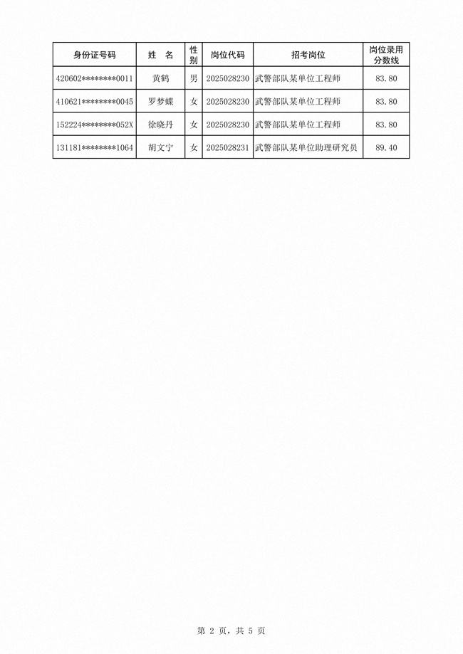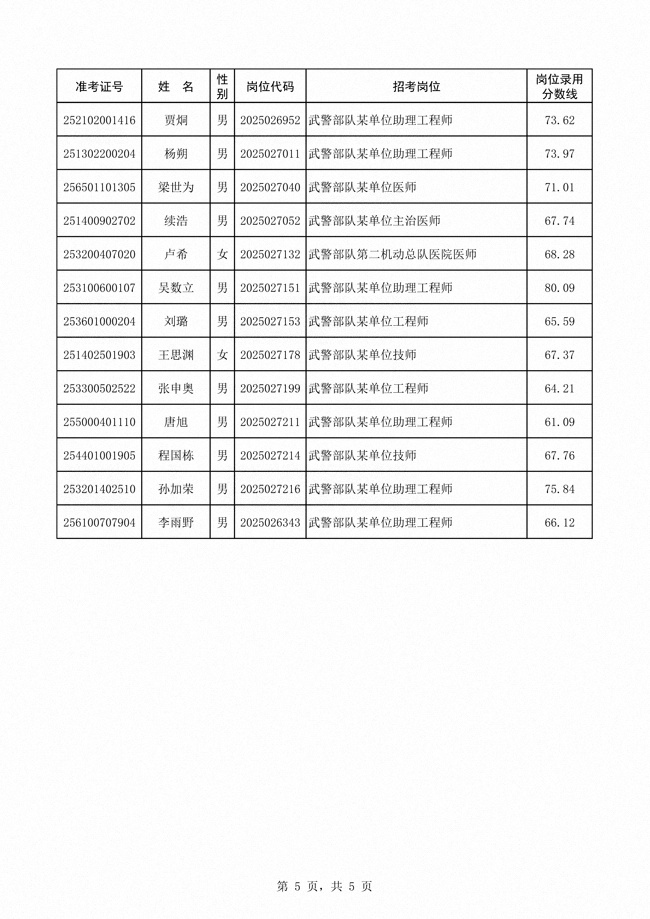 2025年武裝部文職人員擬錄用名單(含上岸分數(shù)線) 2025-10-09
