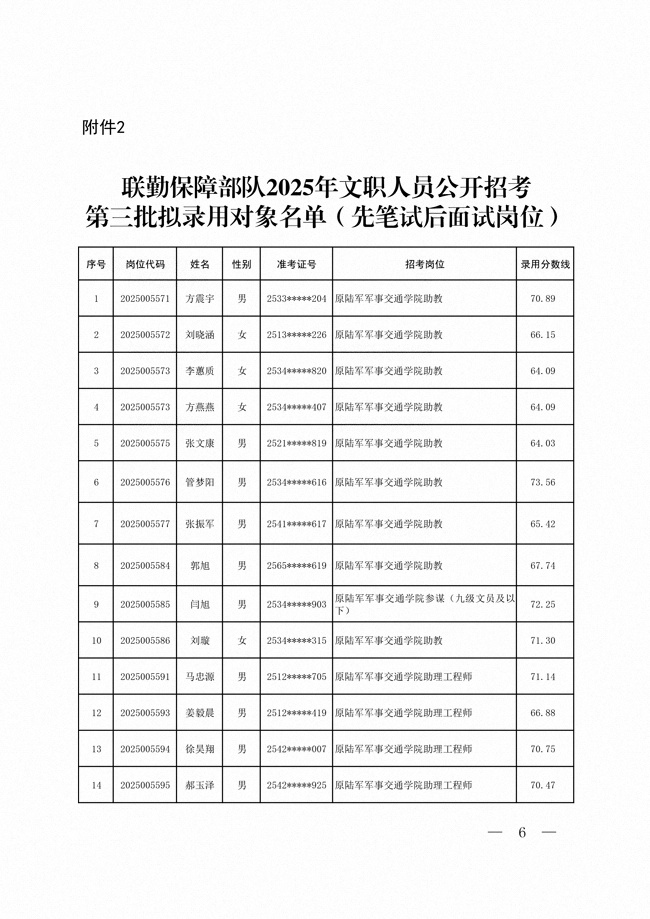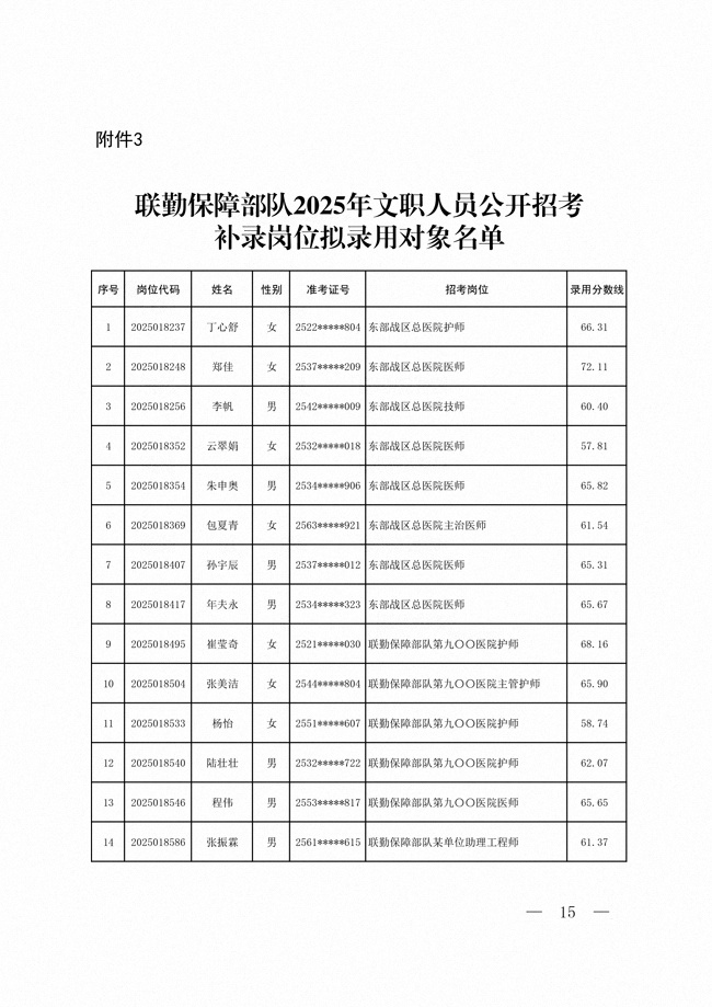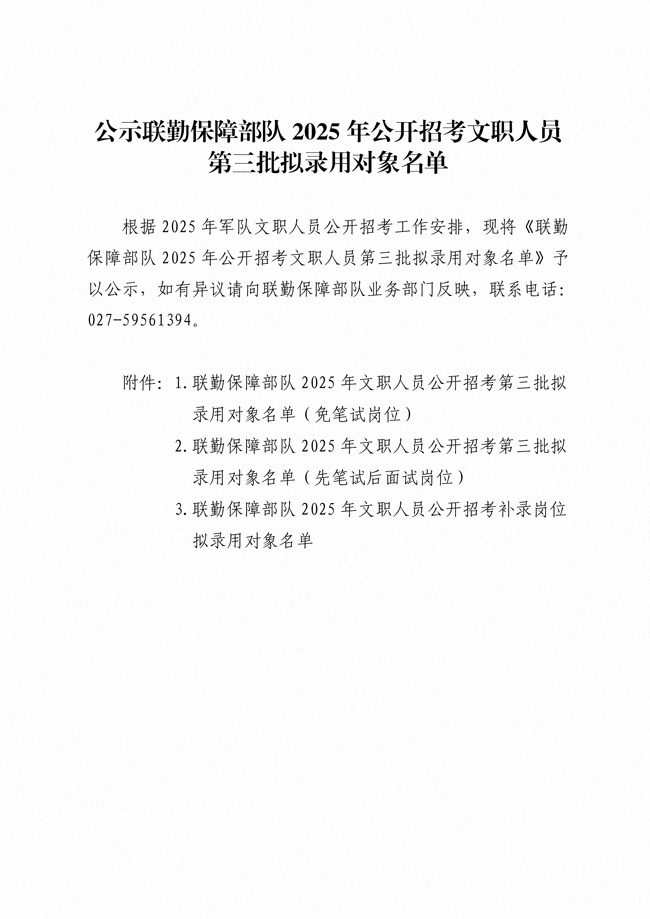 原文標(biāo)題:公示聯(lián)勤保障部隊2025年公開招考文職人員第三批擬錄用對象名單