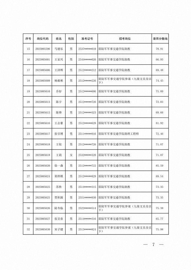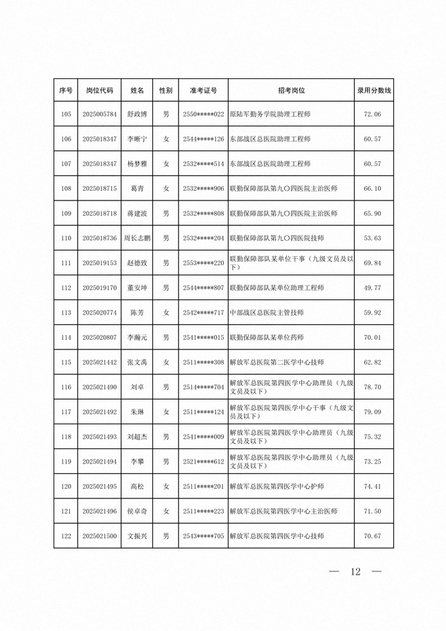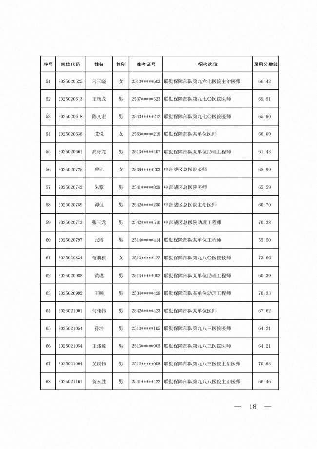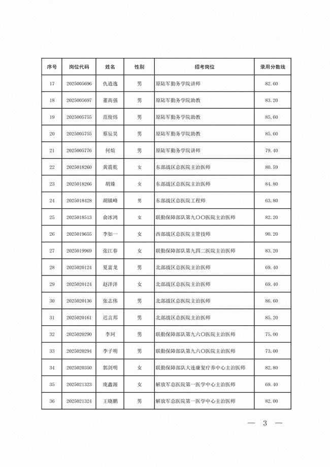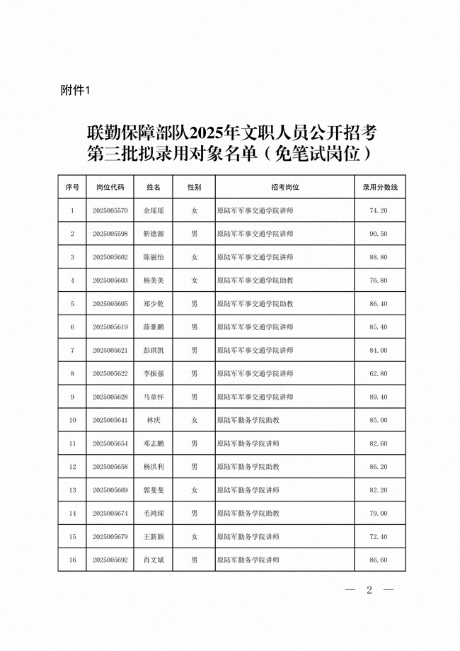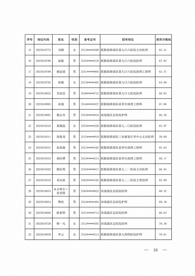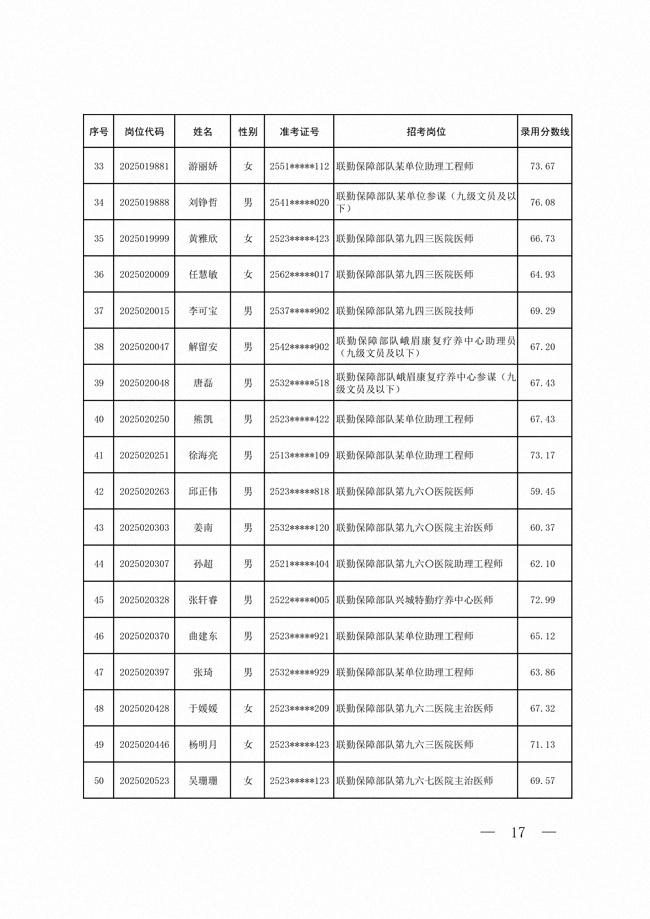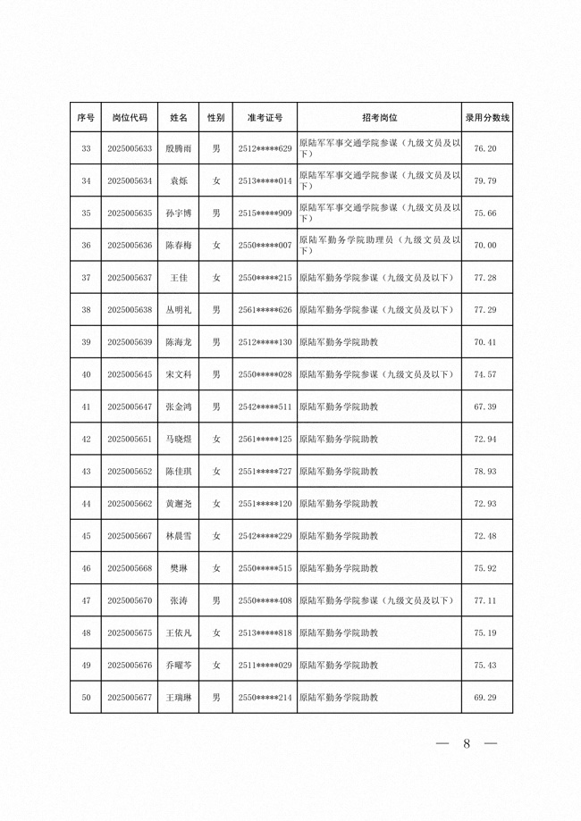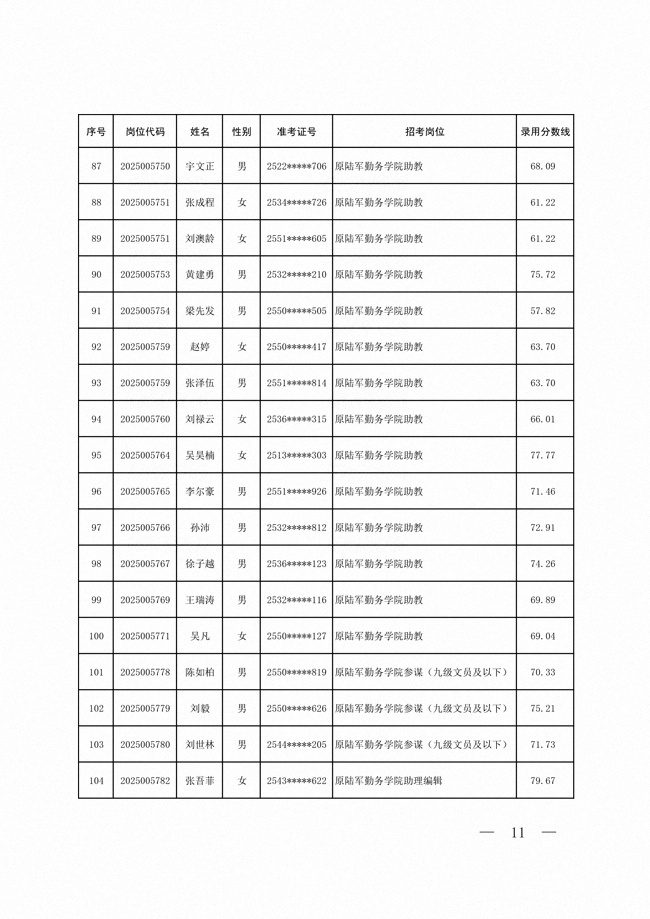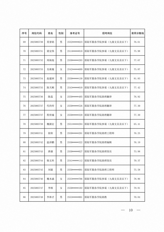 2025年武裝部文職人員擬錄用名單(含上岸分?jǐn)?shù)線) 2025-10-09