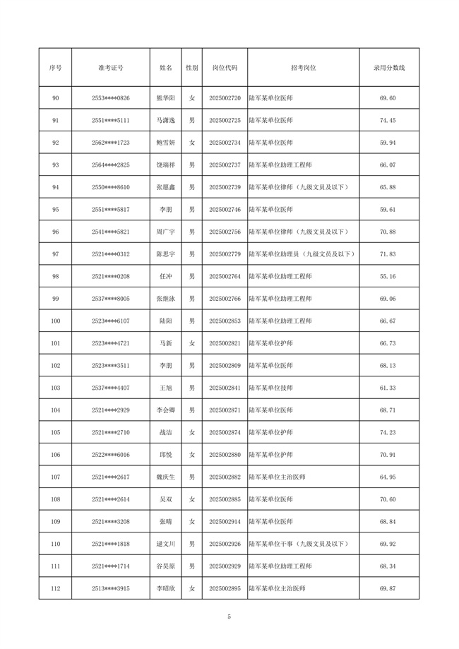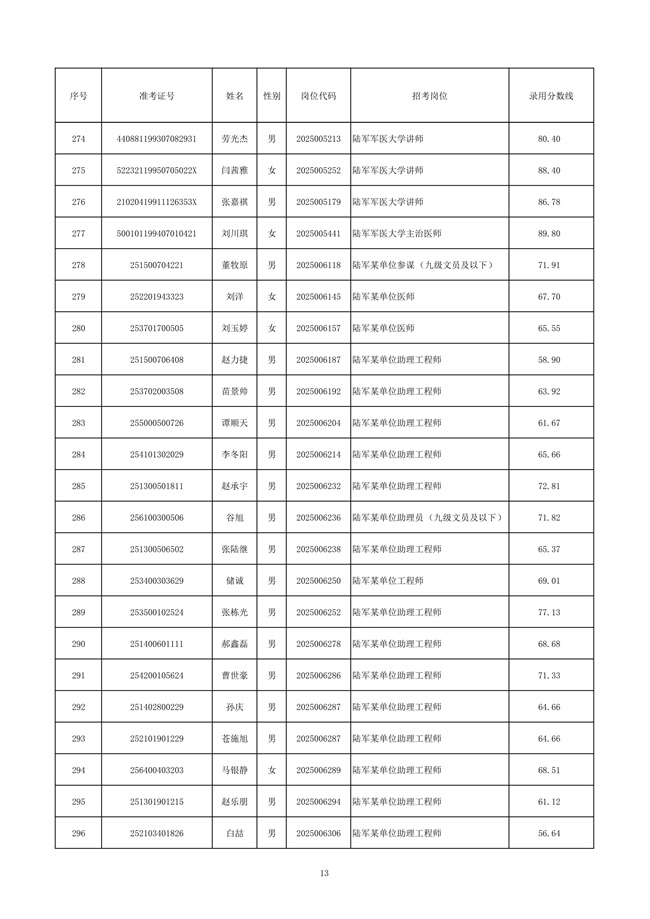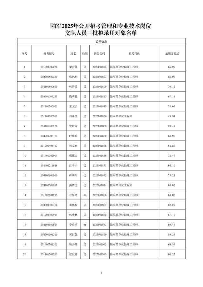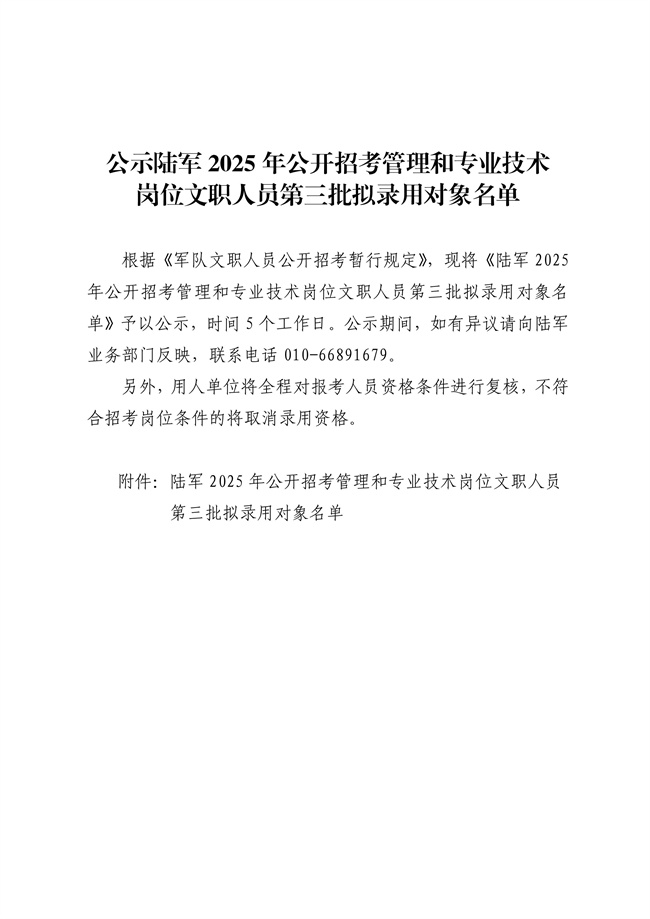 原文標(biāo)題:公示陸軍2025年公開招考管理和專業(yè)技術(shù)崗位文職人員第三批擬錄用對(duì)象名單