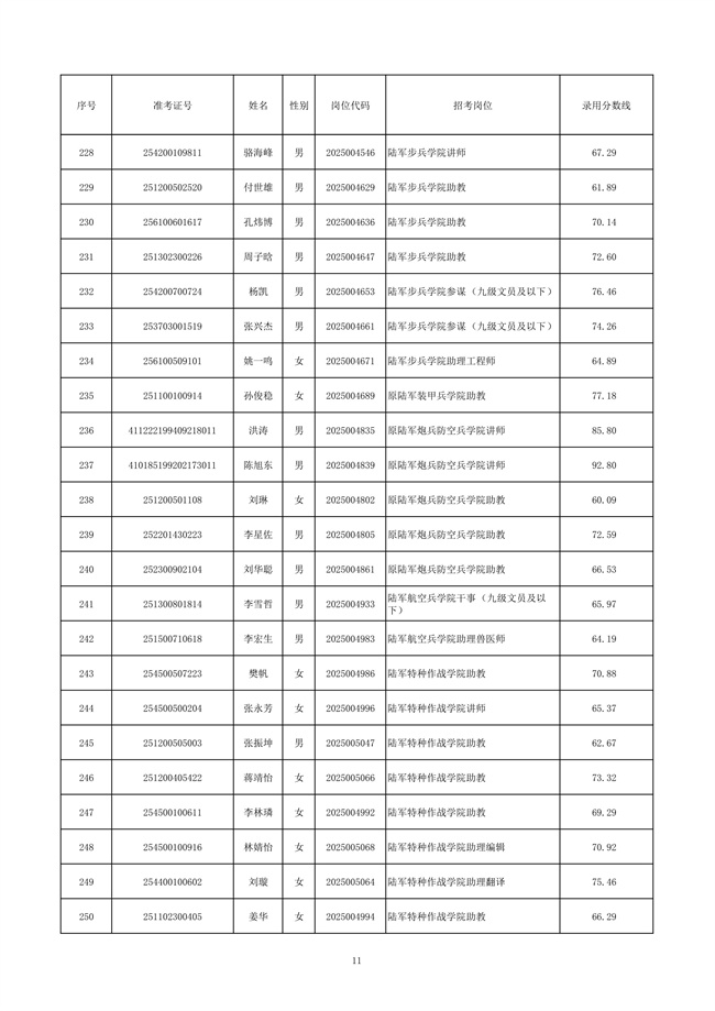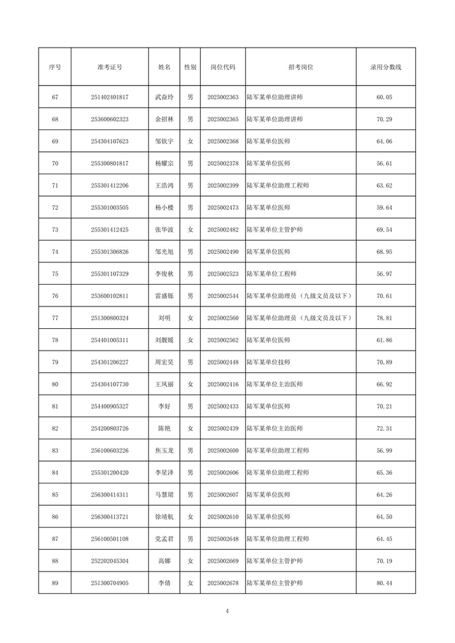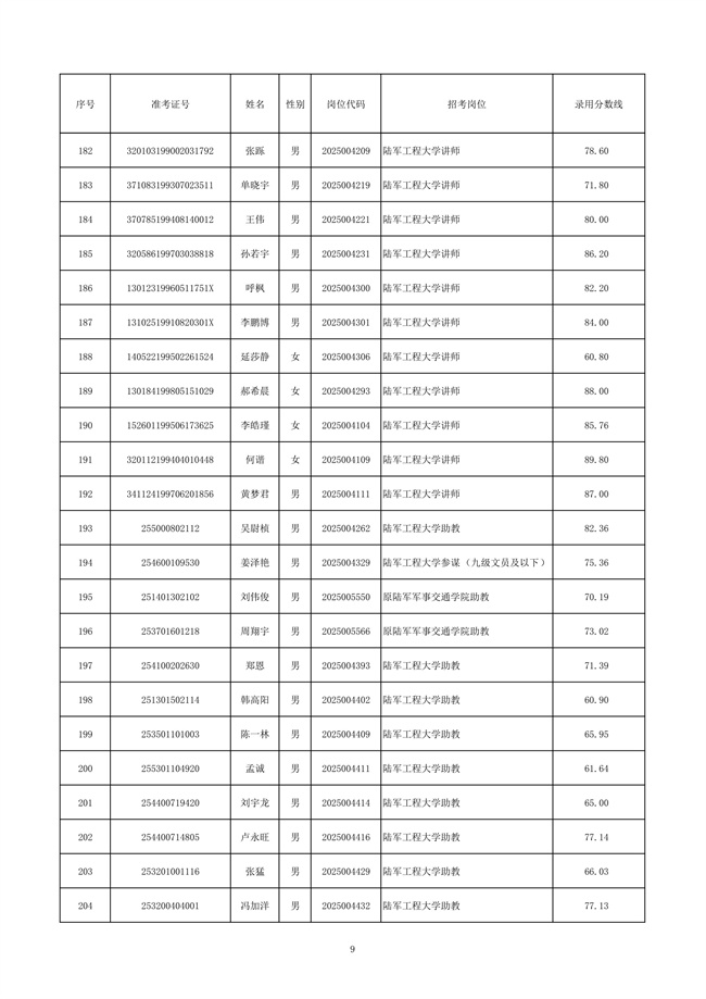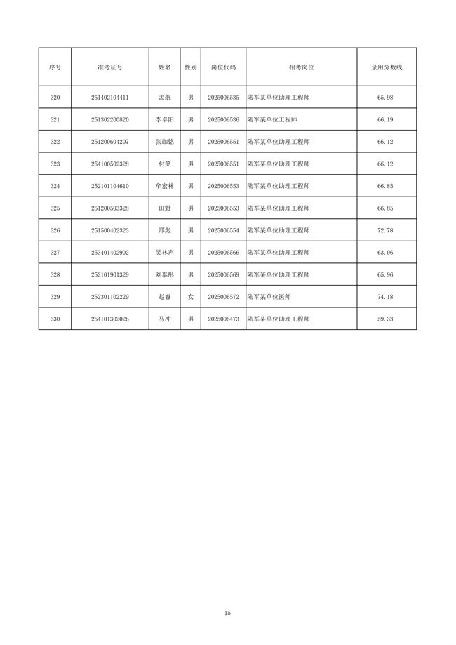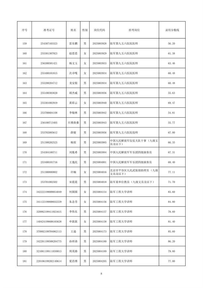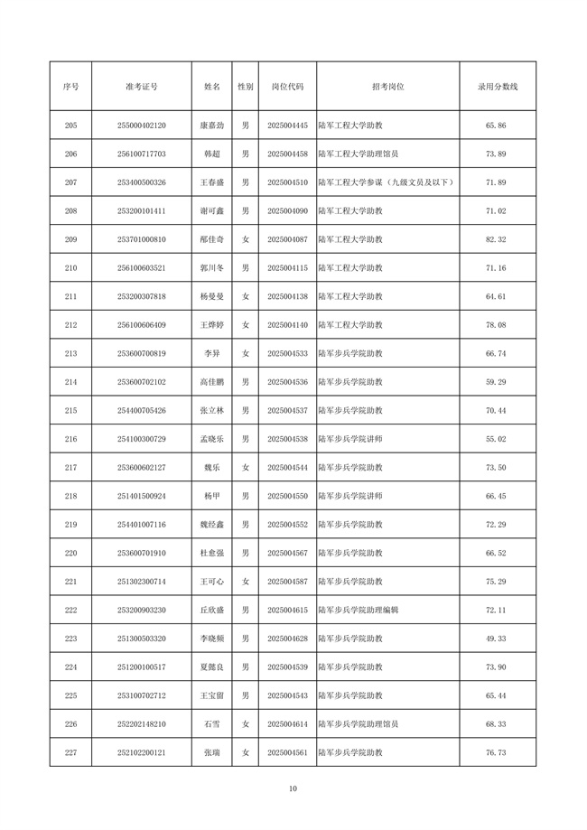 2025年武裝部文職人員擬錄用名單(含上岸分?jǐn)?shù)線) 2025-10-09