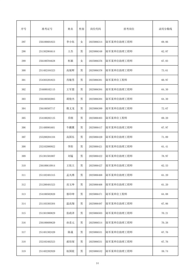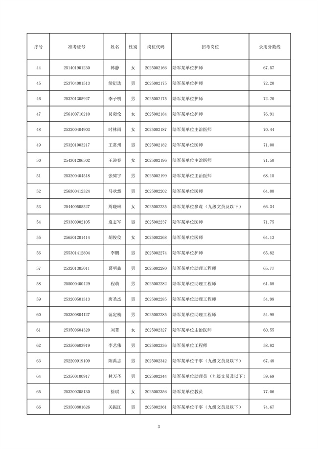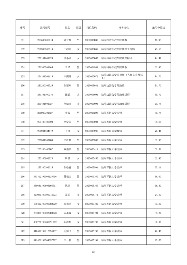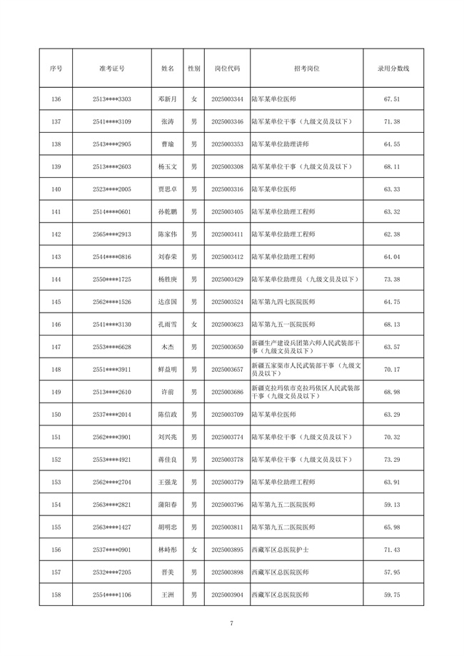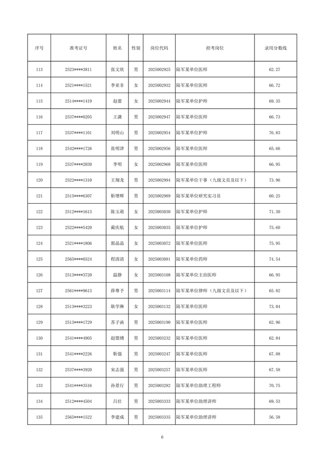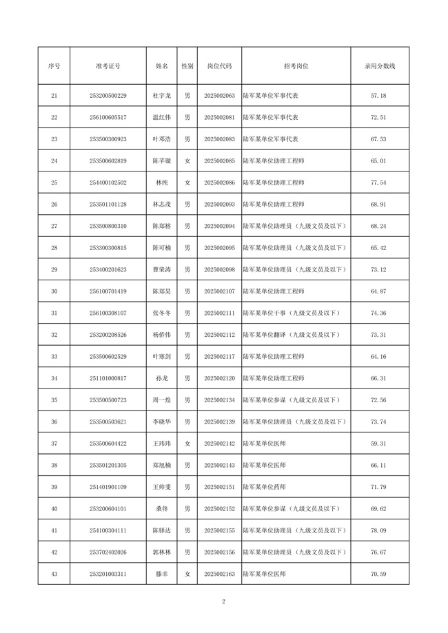 2025年武裝部文職人員擬錄用名單(含上岸分?jǐn)?shù)線) 2025-10-09