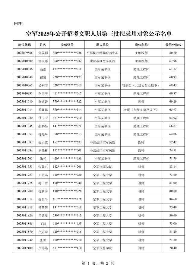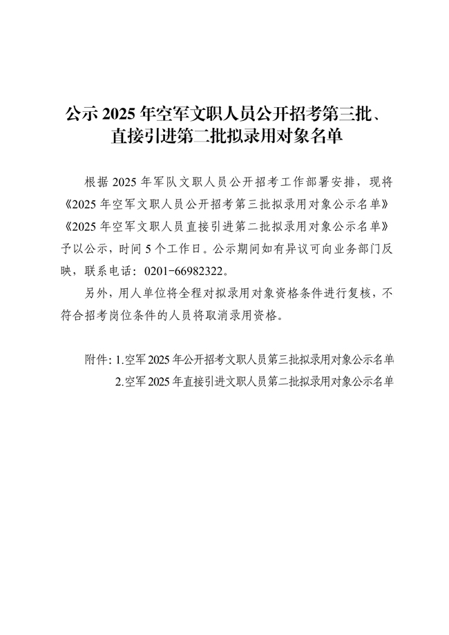 原文標(biāo)題:公示2025年空軍文職人員公開招考第三批、直接引進(jìn)第二批擬錄用對(duì)象名單