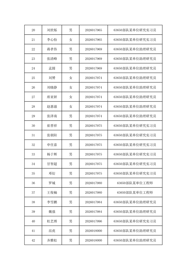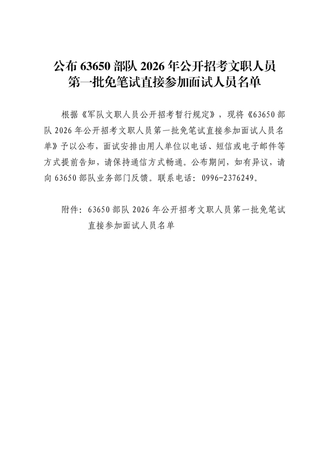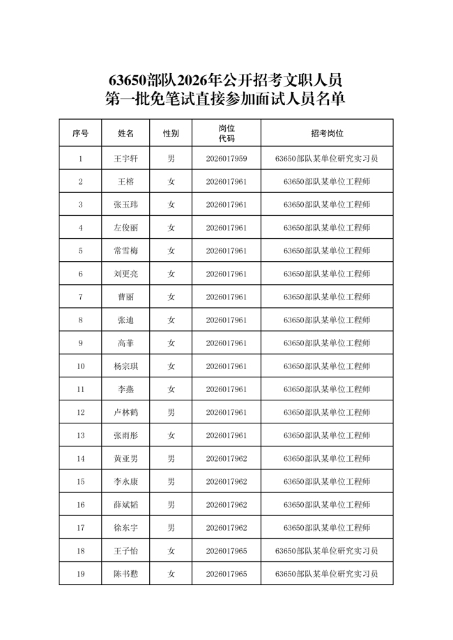 原文標(biāo)題:公布63650部隊(duì)2026年公開招考文職人員第一批免筆試直接參加面試人員名單