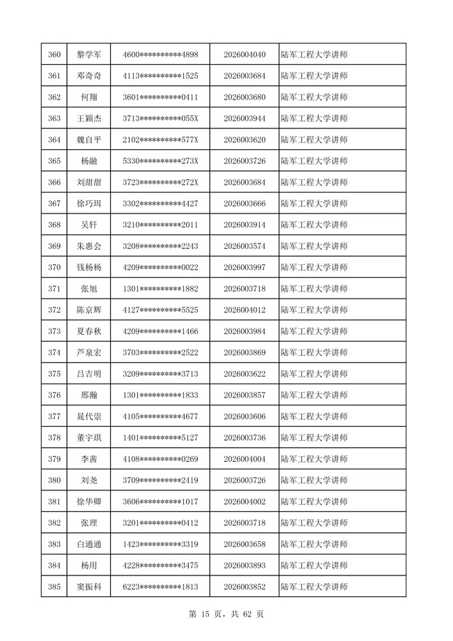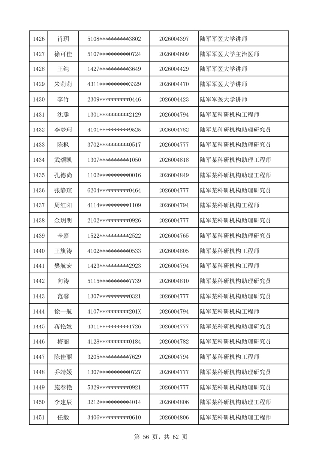原文標題:公布陸軍2026年公開招考文職人員免筆試直接參加面試人員名單