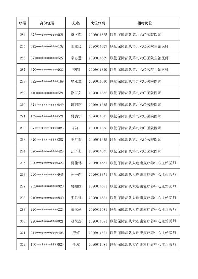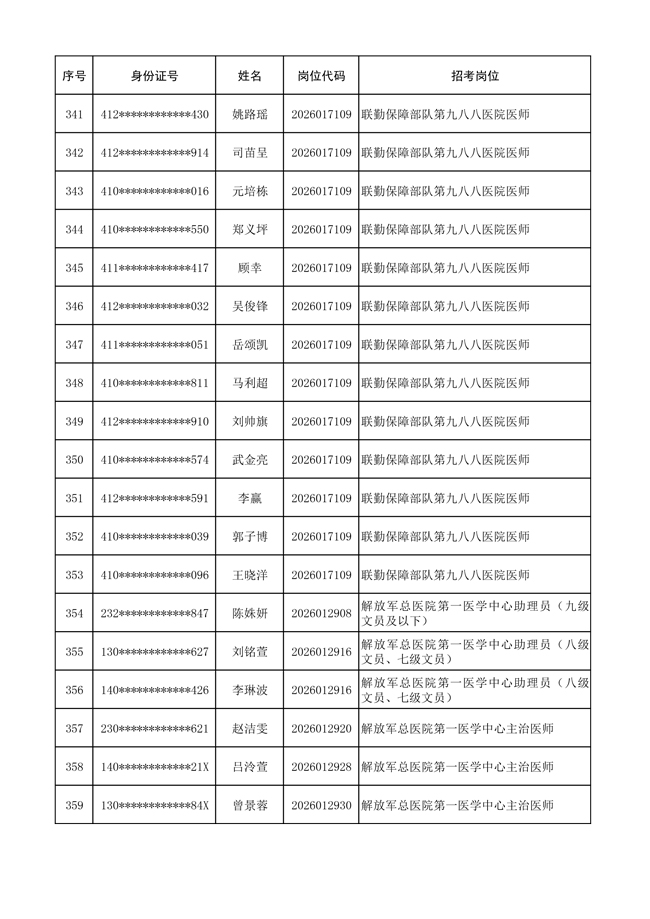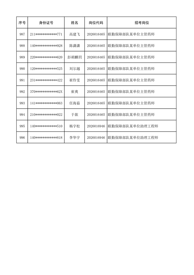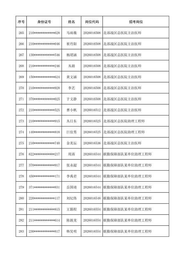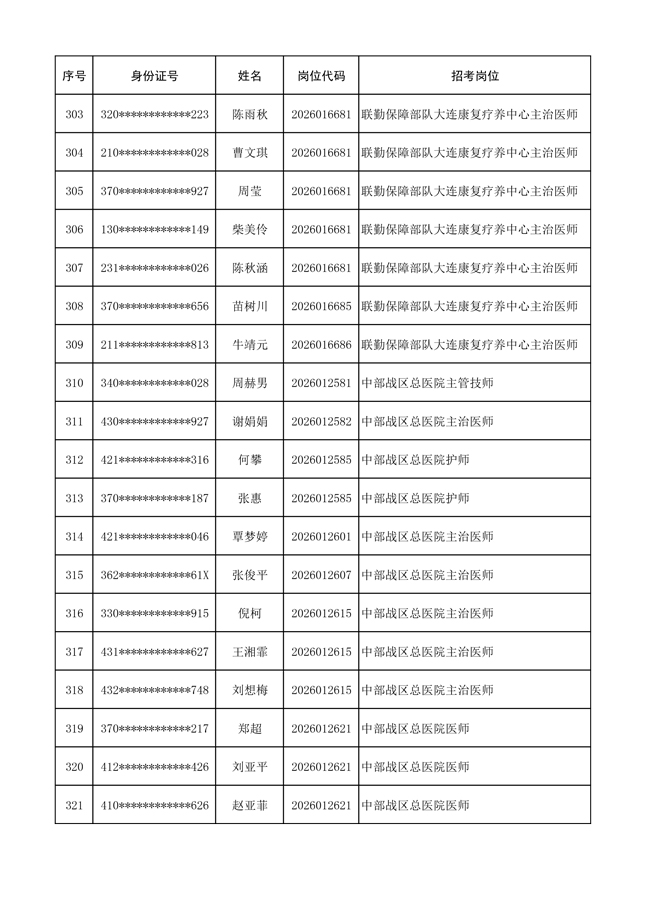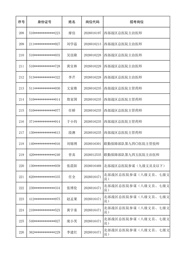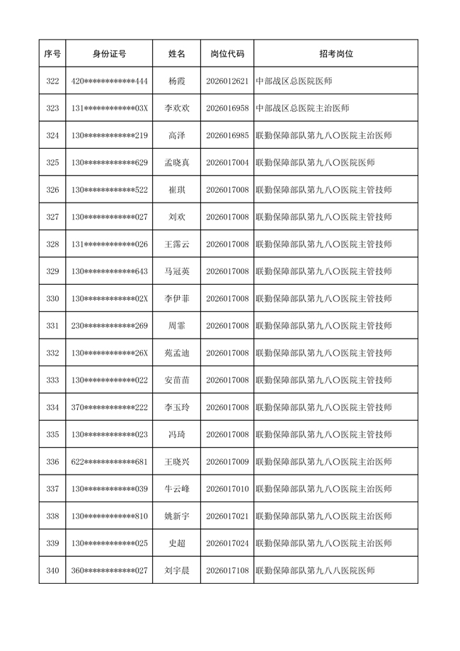 原文標(biāo)題:公布聯(lián)勤保障部隊(duì)2026年文職人員公開招考 第一批免筆試直接參加面試人員名單