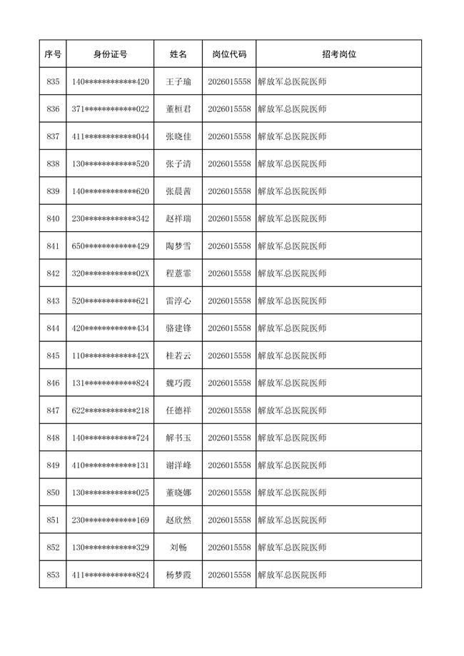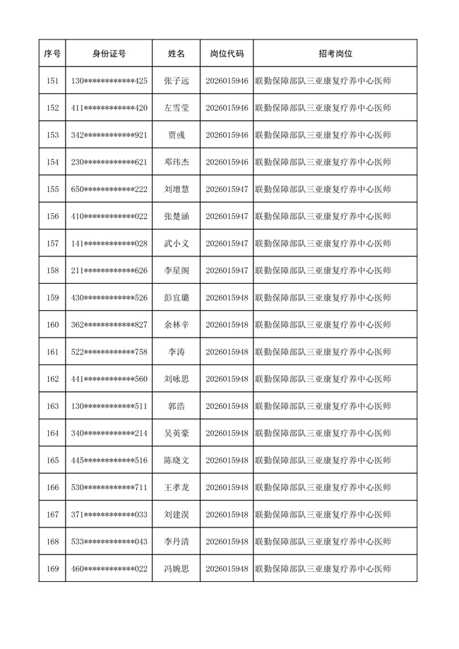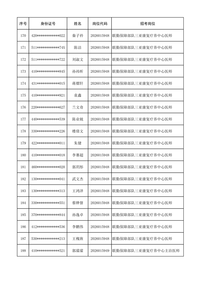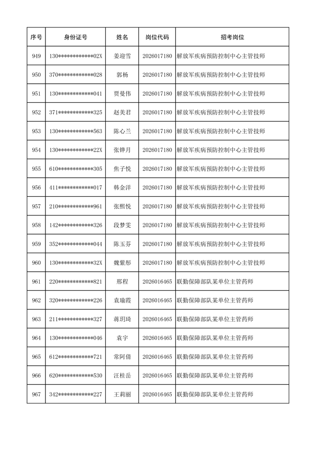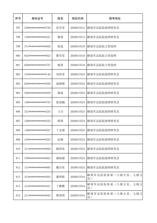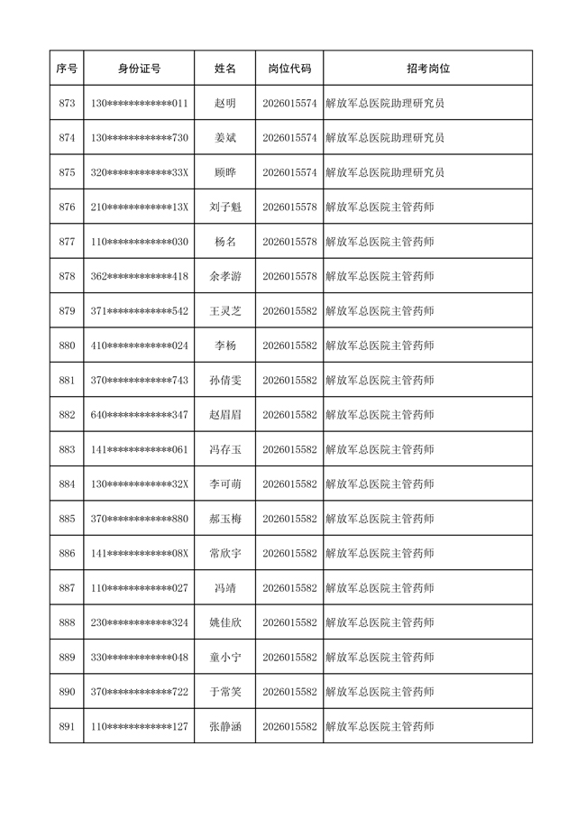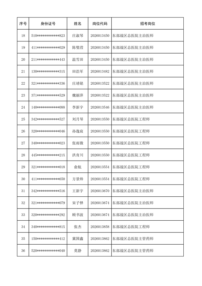 原文標(biāo)題:公布聯(lián)勤保障部隊(duì)2026年文職人員公開招考 第一批免筆試直接參加面試人員名單