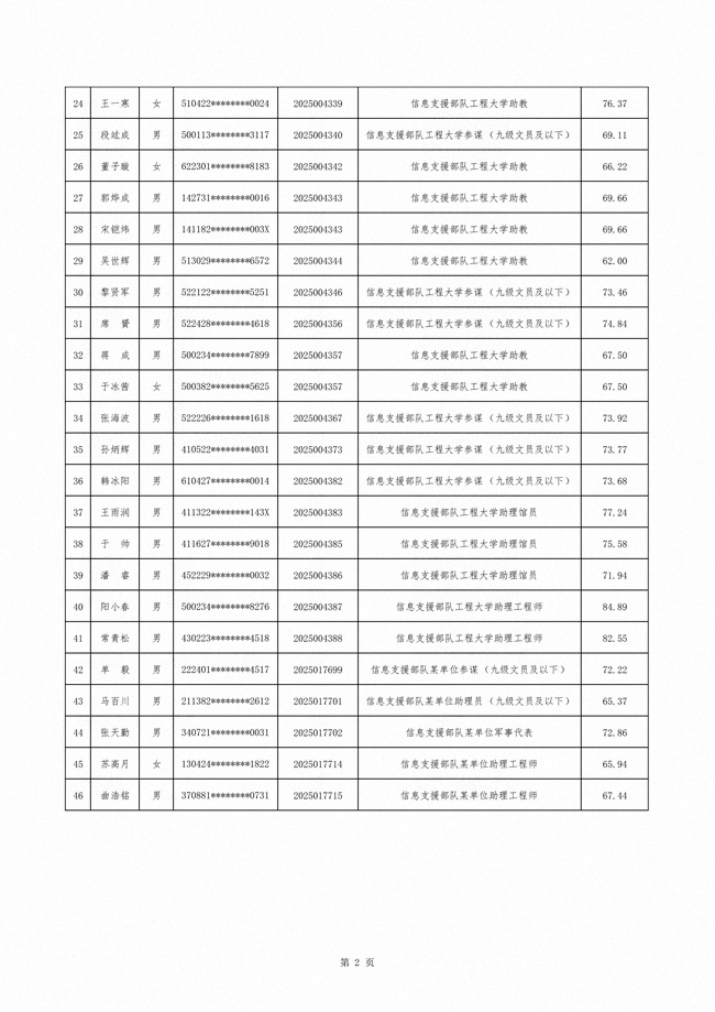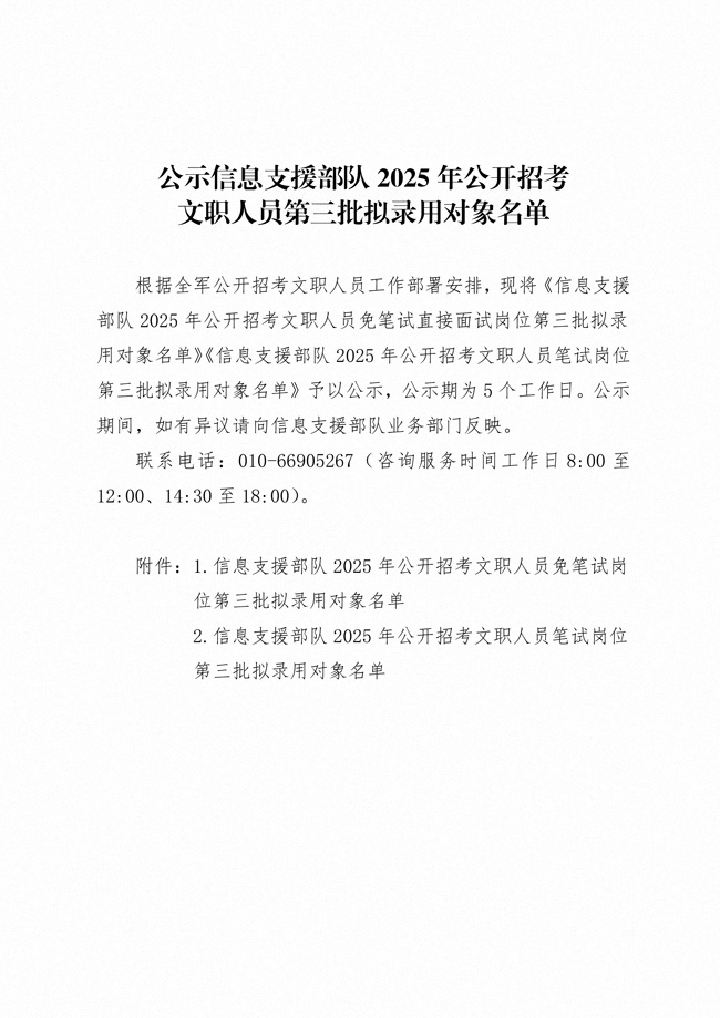 原文標(biāo)題:公示信息支援部隊2025年公開招考 文職人員第三批擬錄用對象名單
