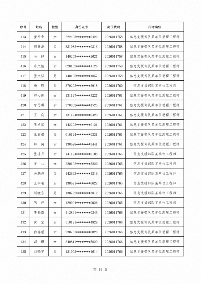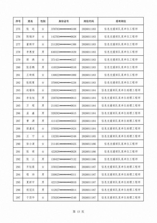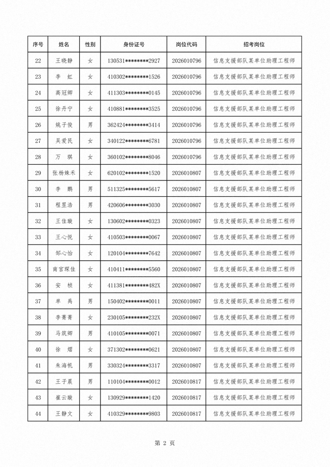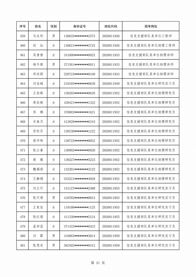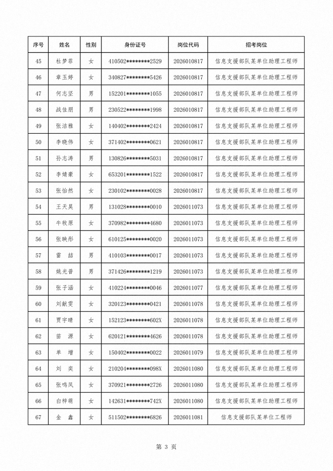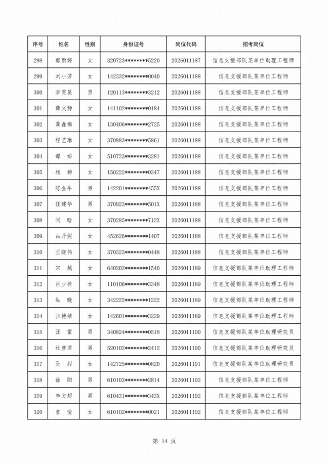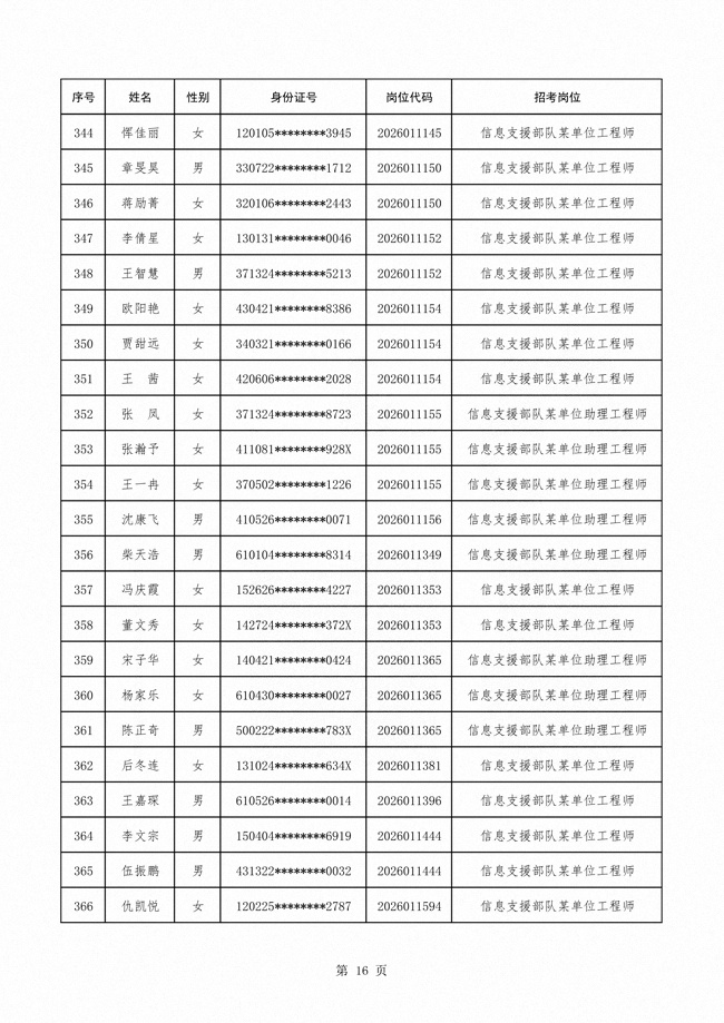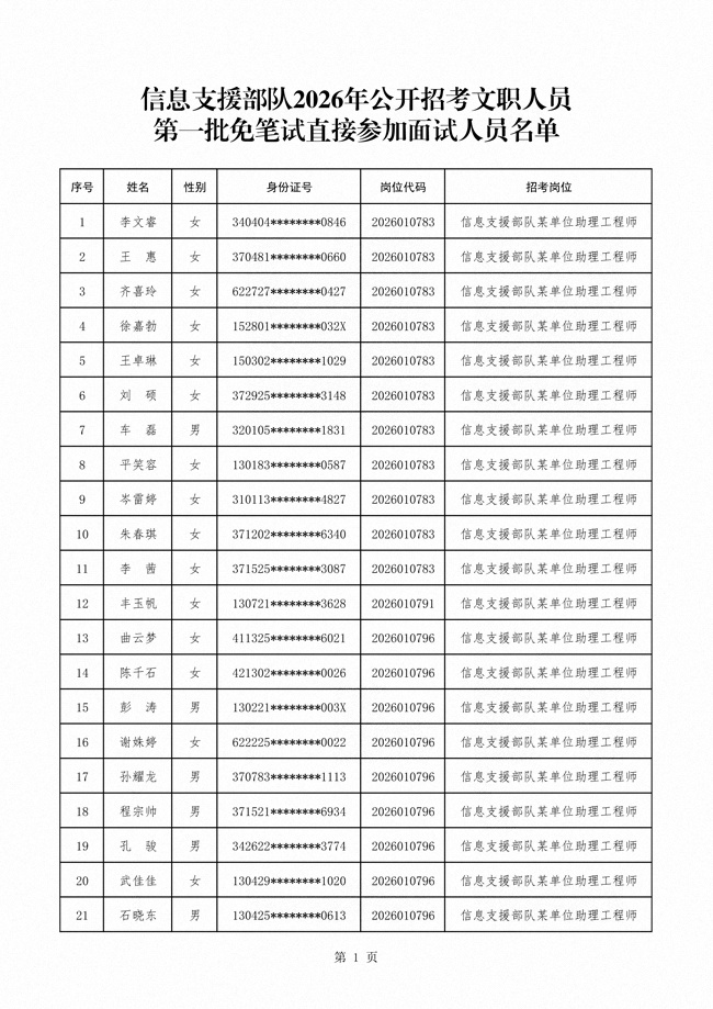 原文標(biāo)題:公布信息支援部隊(duì)2026年公開招考文職人員 第一批免筆試直接參加面試人員名單