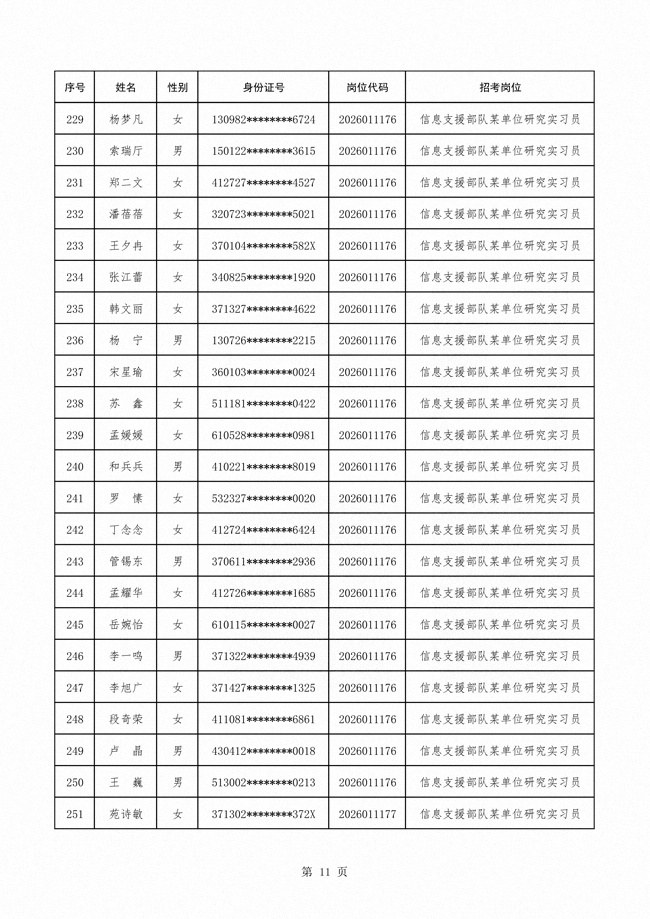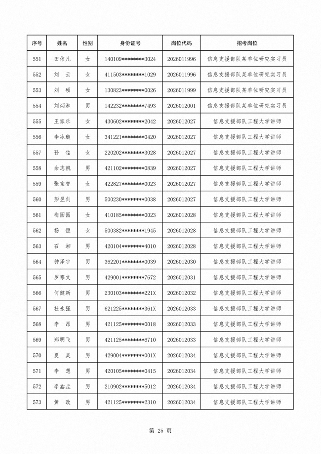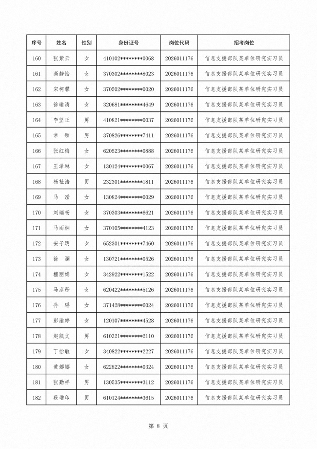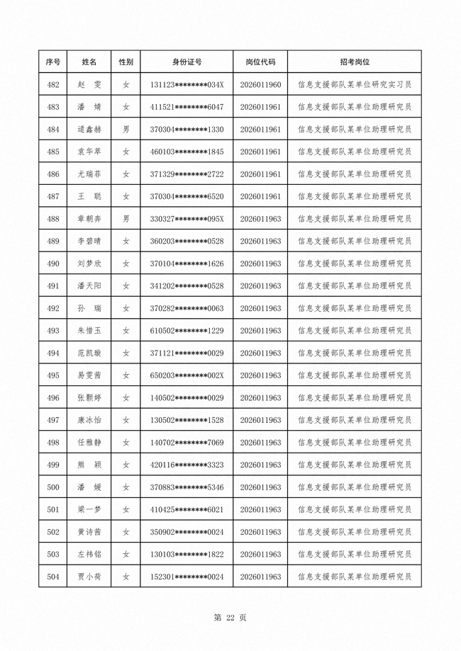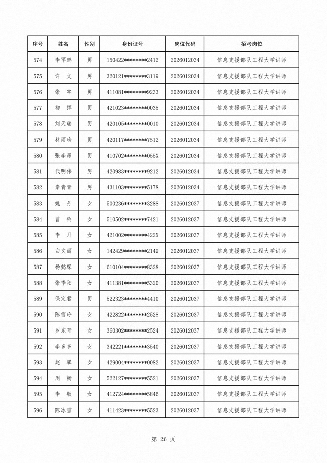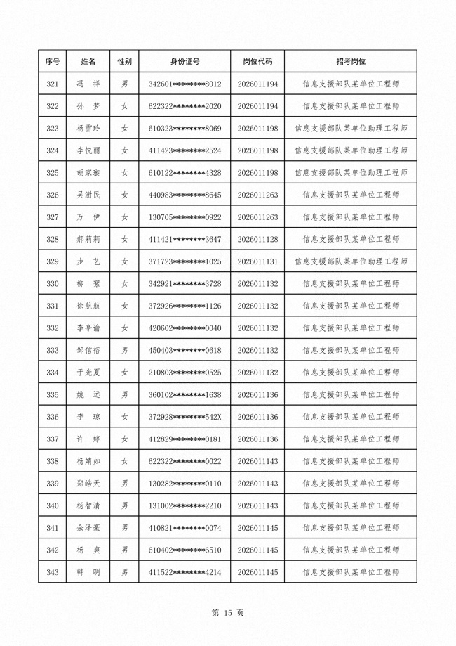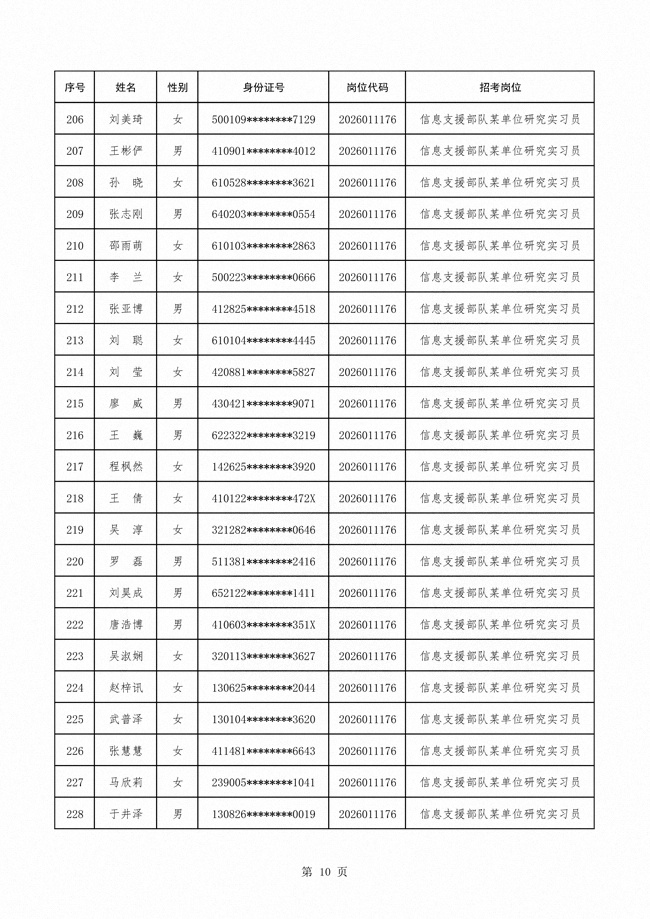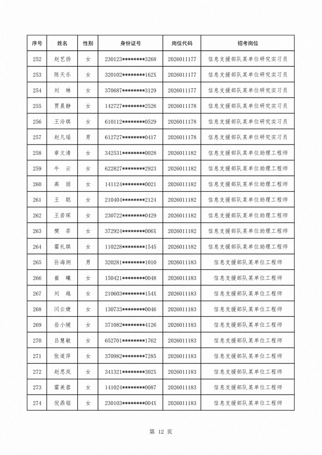 原文標(biāo)題:公布信息支援部隊(duì)2026年公開招考文職人員 第一批免筆試直接參加面試人員名單