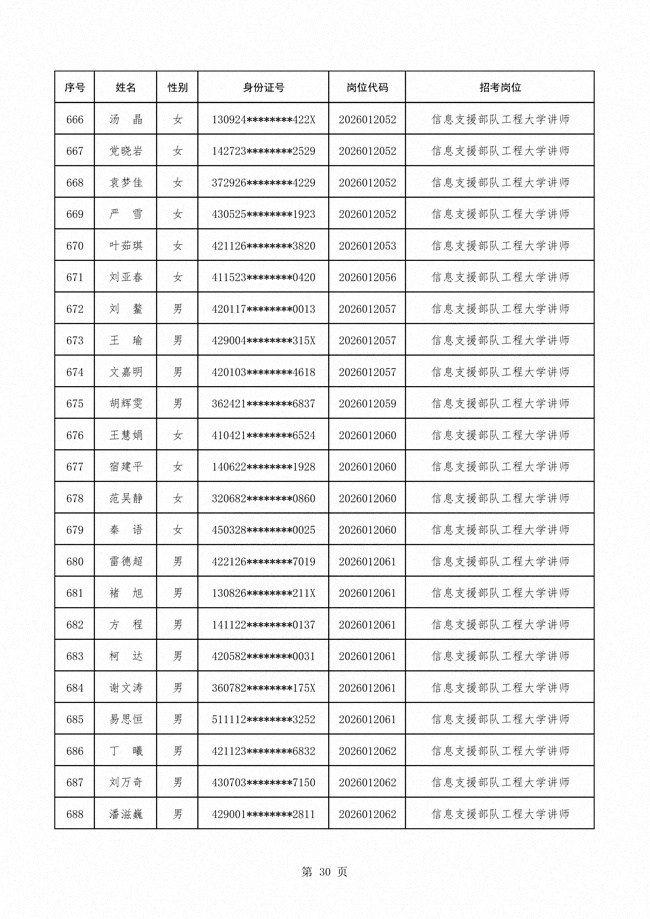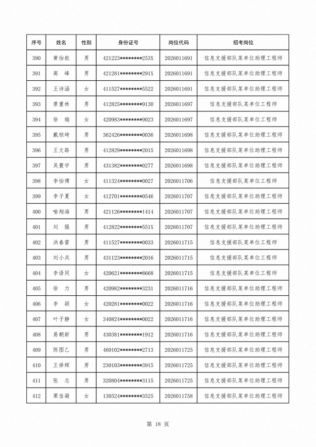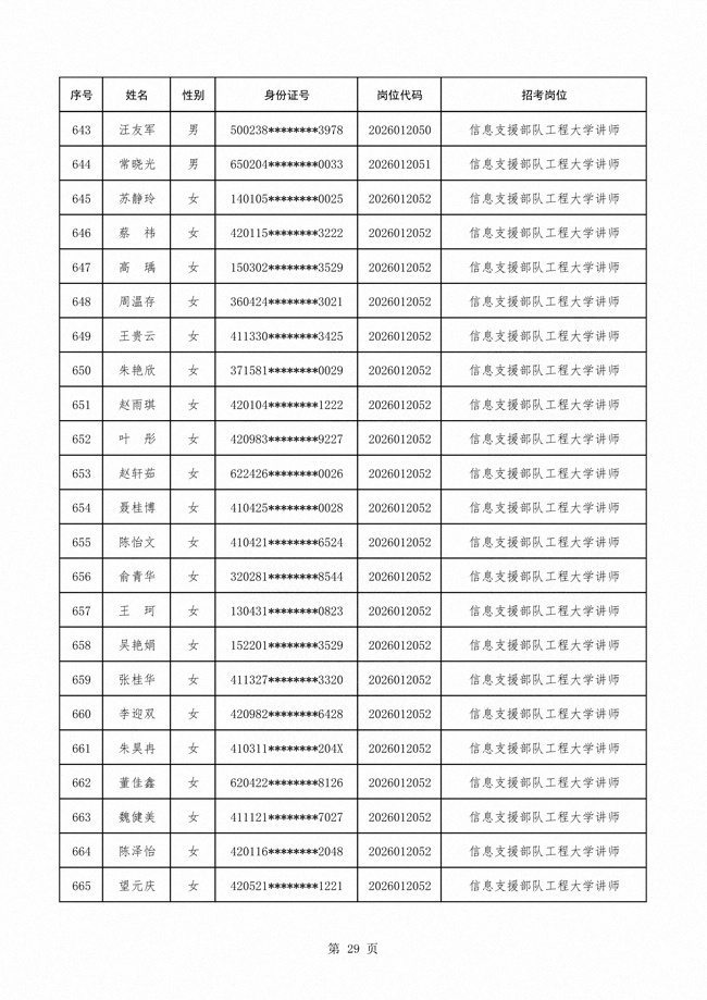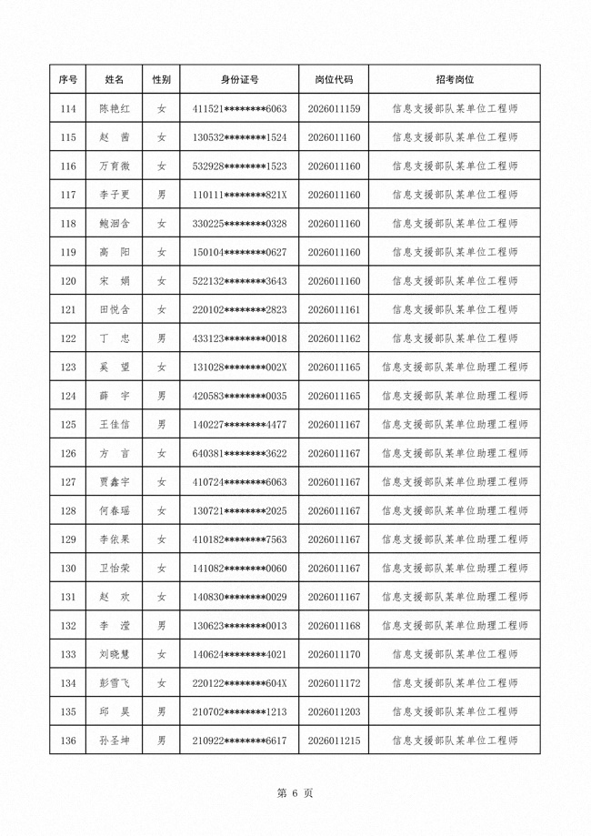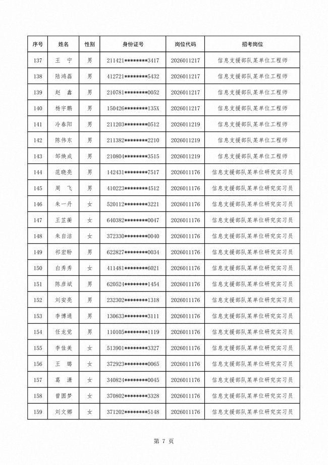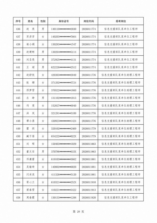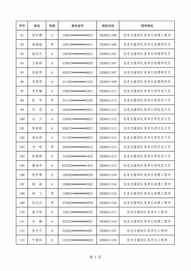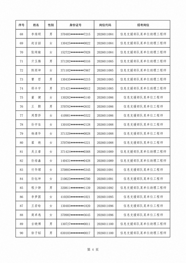 原文標(biāo)題:公布信息支援部隊(duì)2026年公開招考文職人員 第一批免筆試直接參加面試人員名單
