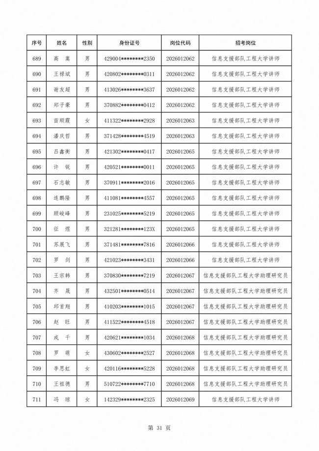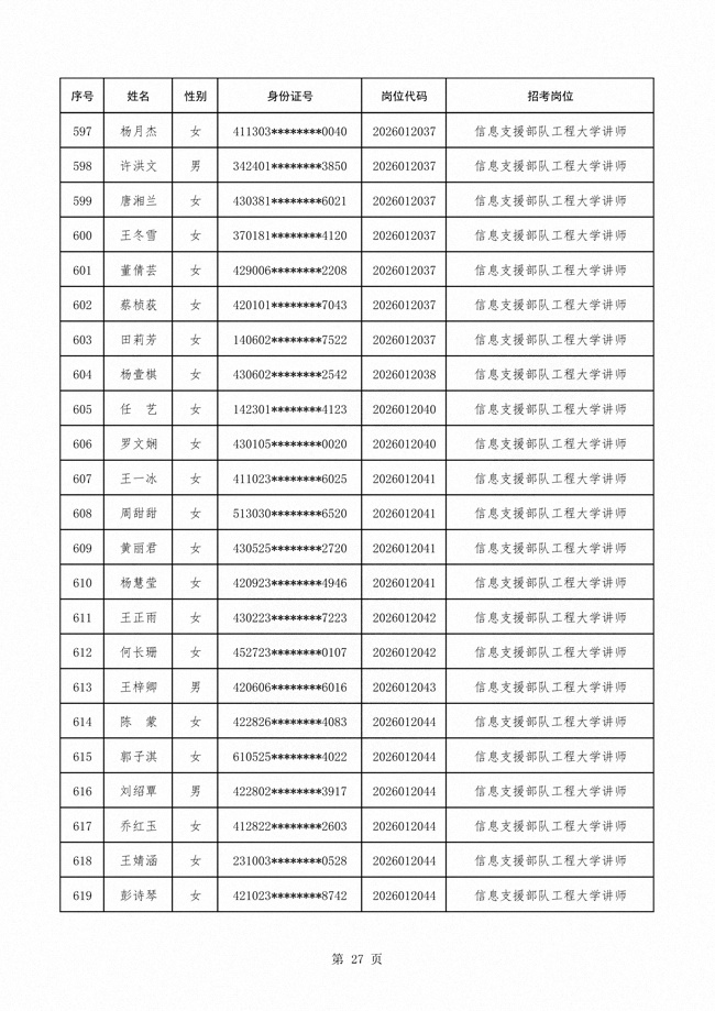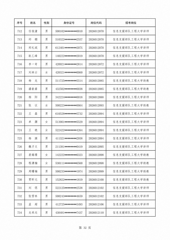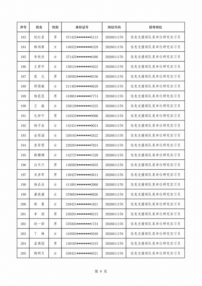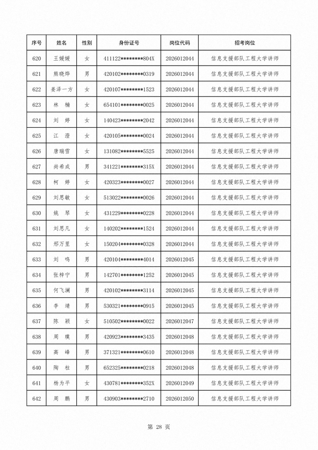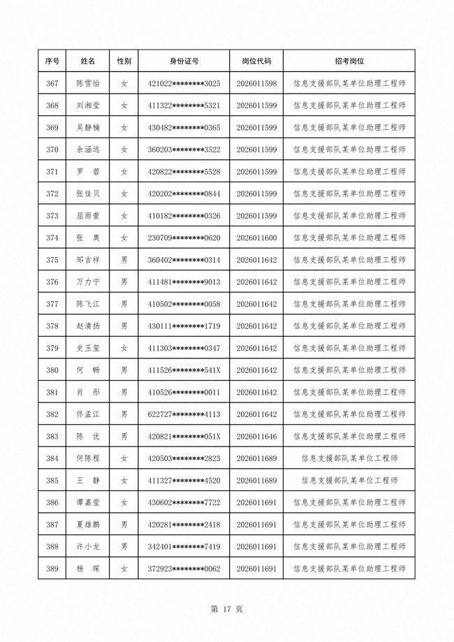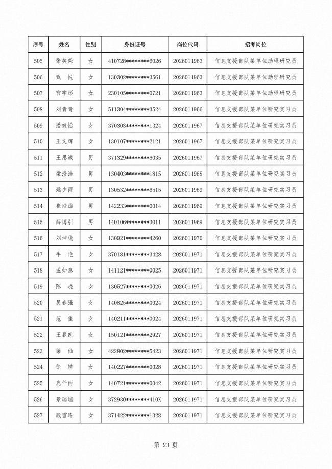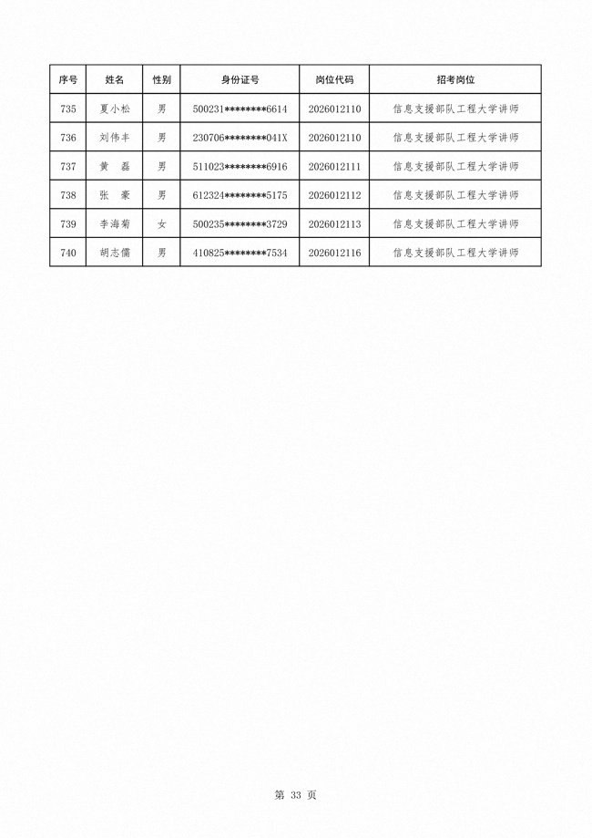 原文標(biāo)題:公布信息支援部隊(duì)2026年公開招考文職人員 第一批免筆試直接參加面試人員名單